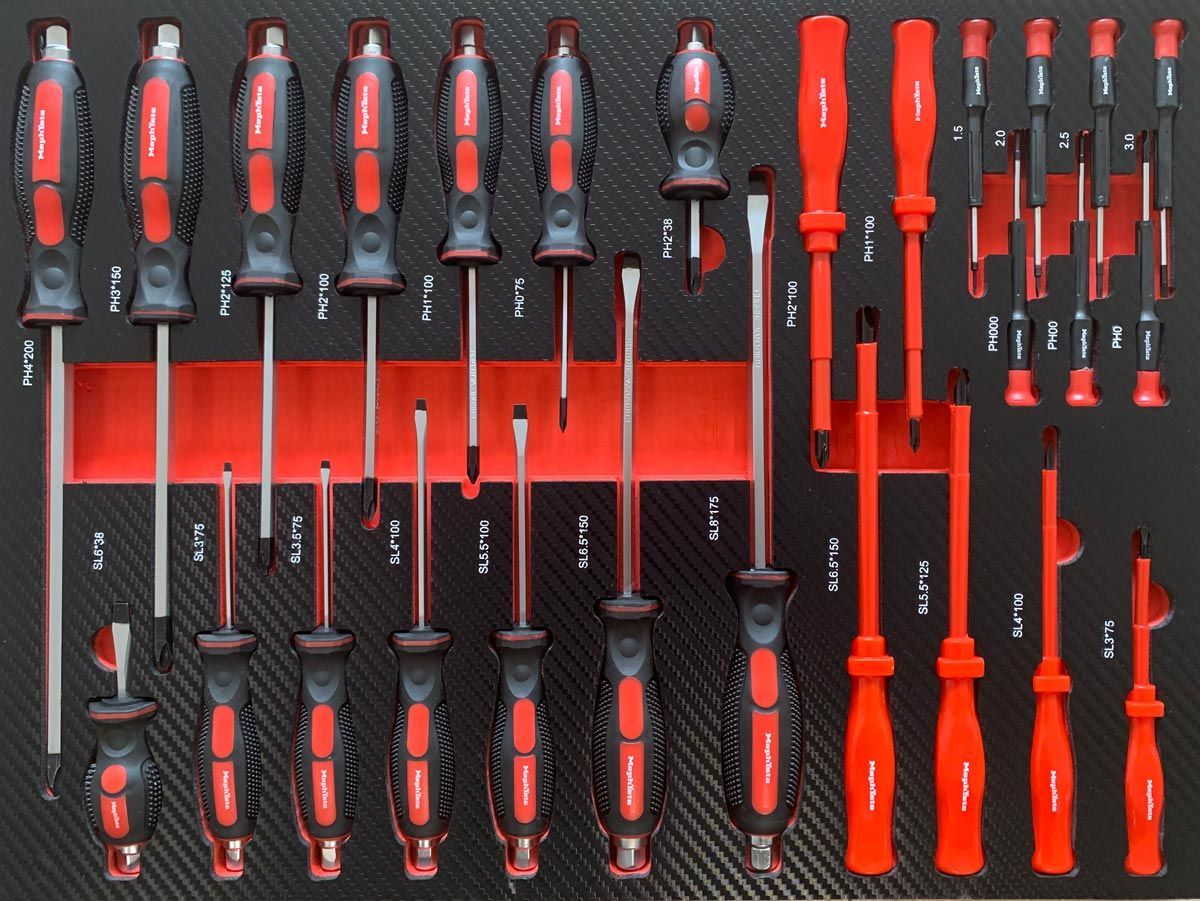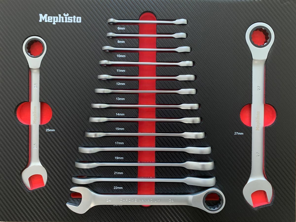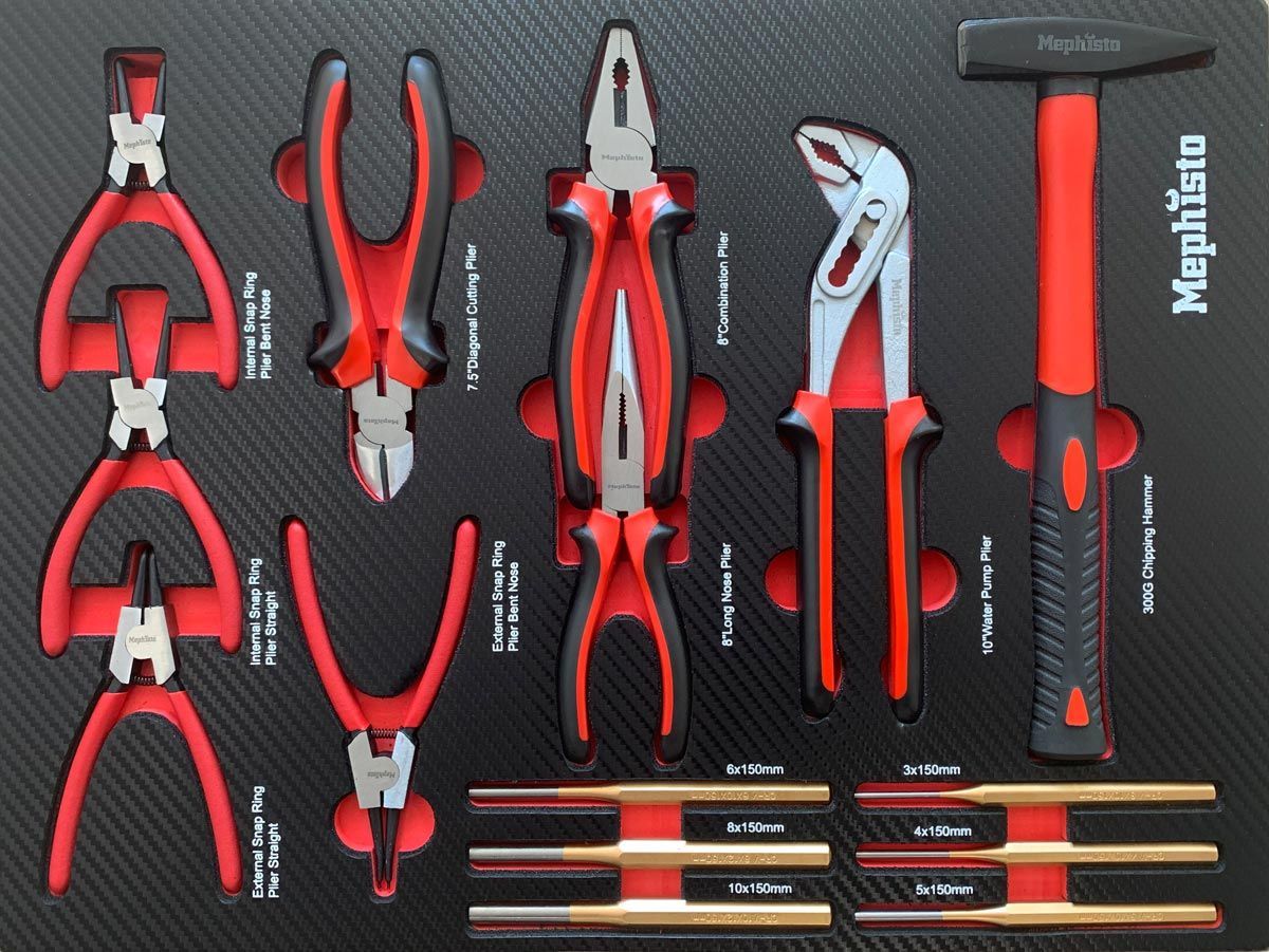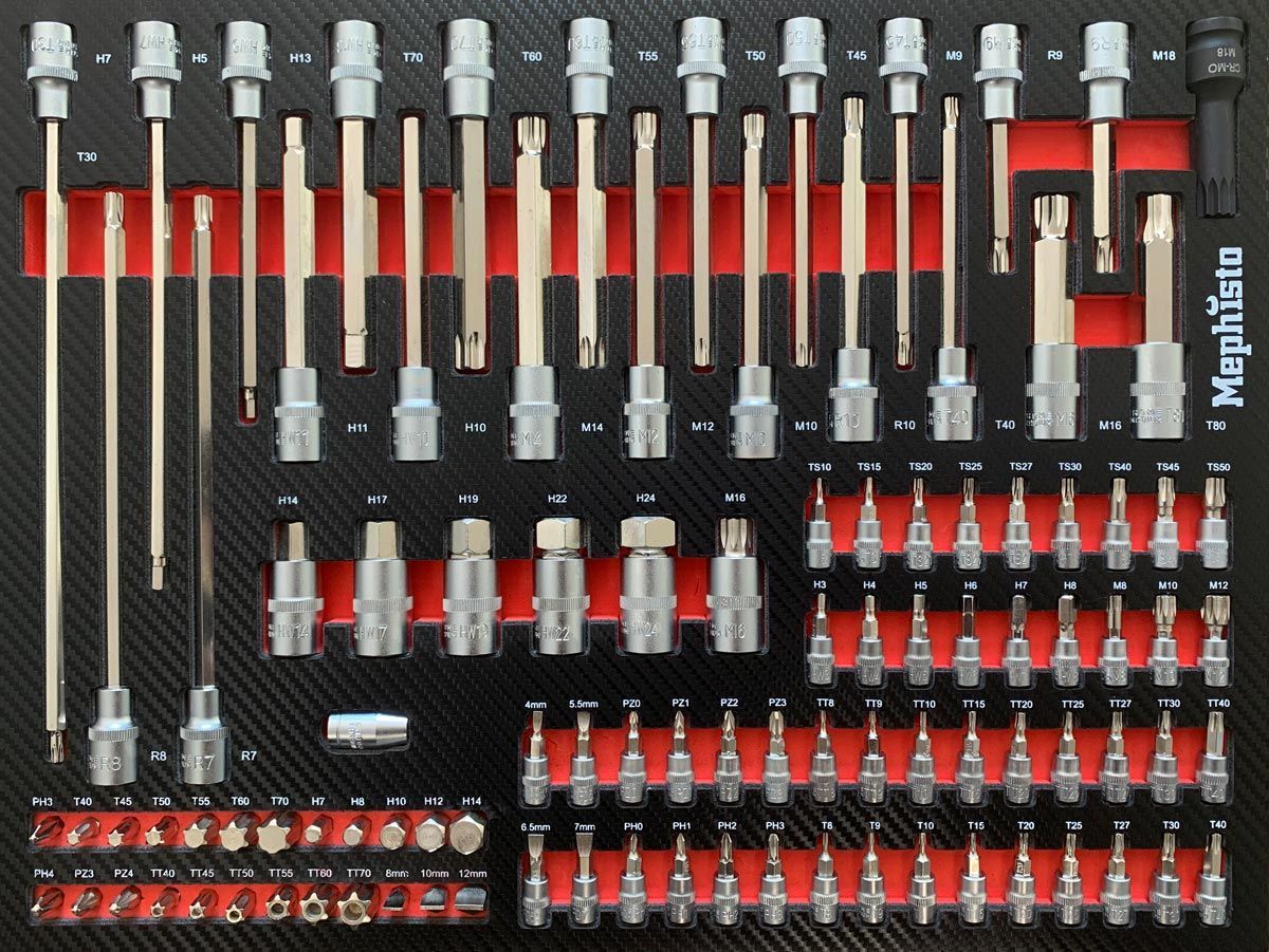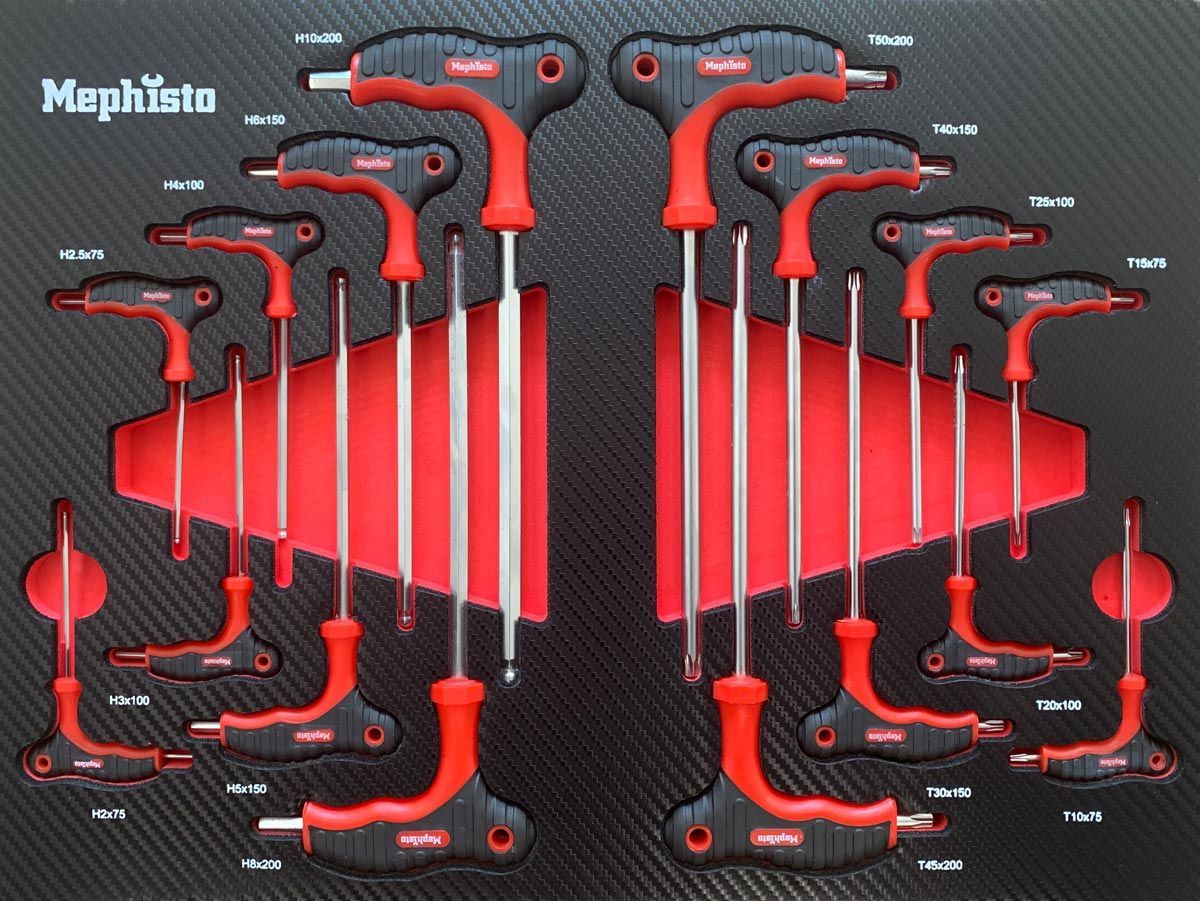 Das Handwerker Set von Mephisto besticht durch seine hochwertigen Schaumstoffeinlagen im Carbon Look. Das Set bestehen aus 261 Teilen (255 Teile Werkzeug + 6 Einlagen) beinhaltet alles was das Handwerker Herz höher schlagen lässt. Sei es der die Reparatur eines Haushaltsgerätes oder das anschließen eines Küchengerätes, Alle Arbeiten können mit diesem Set durchgeführt werden.