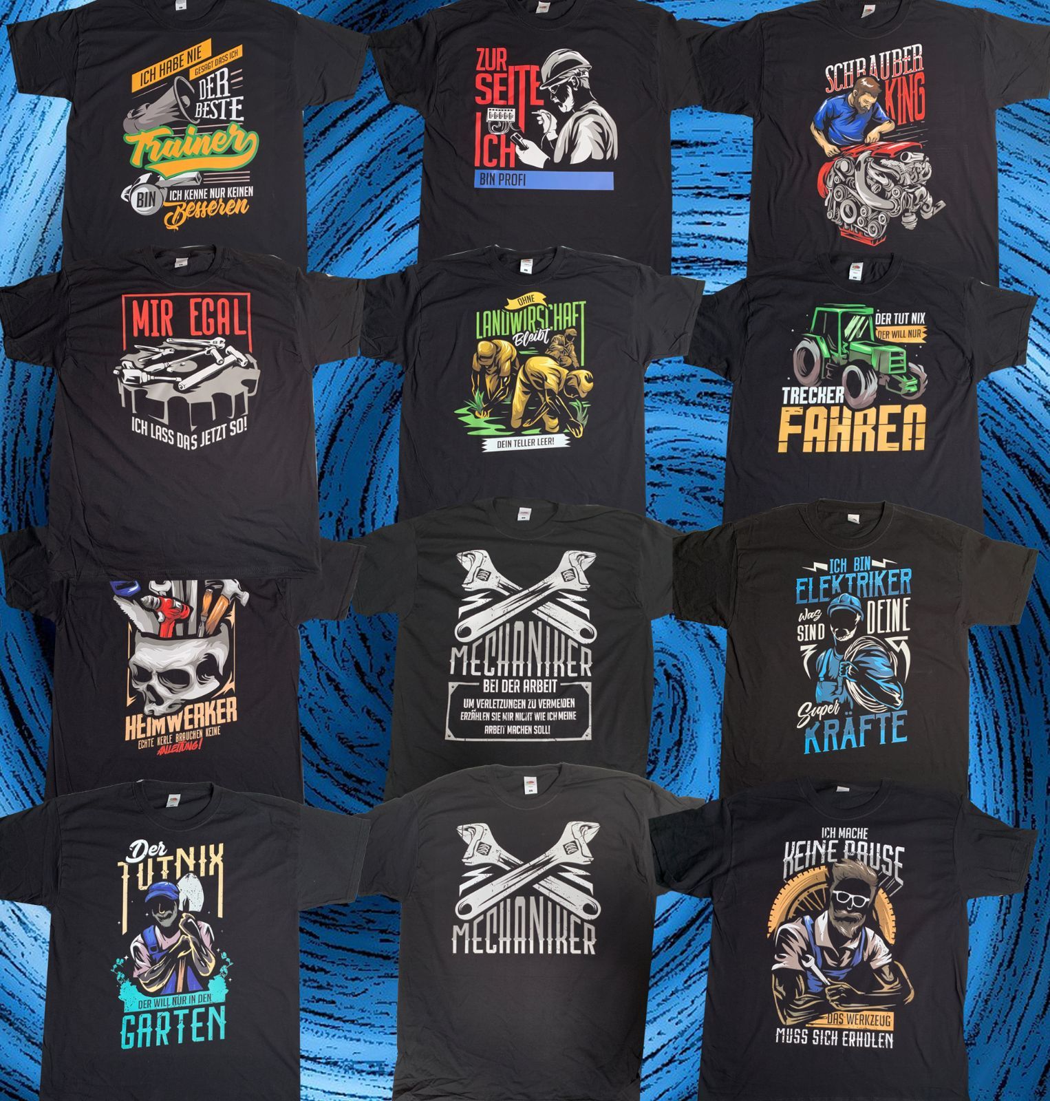 T-Shirt Verschiede Größen, Motive und Farben.Frei Wählbar du kannst SOFORT LIEFERBAR NEUWARE SIE WÄHLEN SELBST WIR FERTIGEN FÜR SIE. Coole Motive druck auf Fruit of the Loom T-Shirts mit brillantem Druck Rundhals Ausschnitt kurzarm 100% Baumwolle bei 30 Grad Maschinenwaschbar und Unisex-Größen (gera