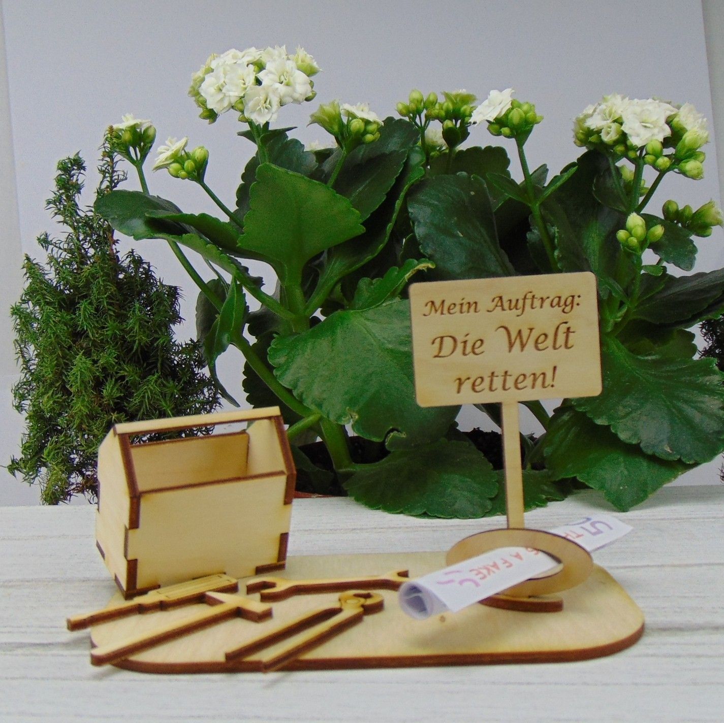 Handwerkerspruch für Männer " Mein Auftrag: Die Welt retten " aus Holz -K21