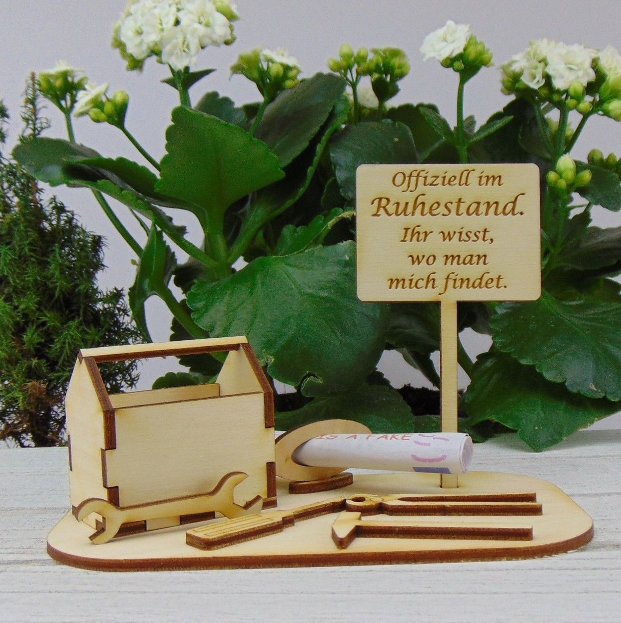 Handwerkerspruch Geldgeschenk für Ruhestand Rente Jubiläum Holz -K21