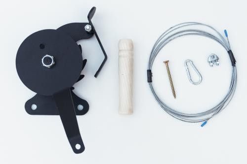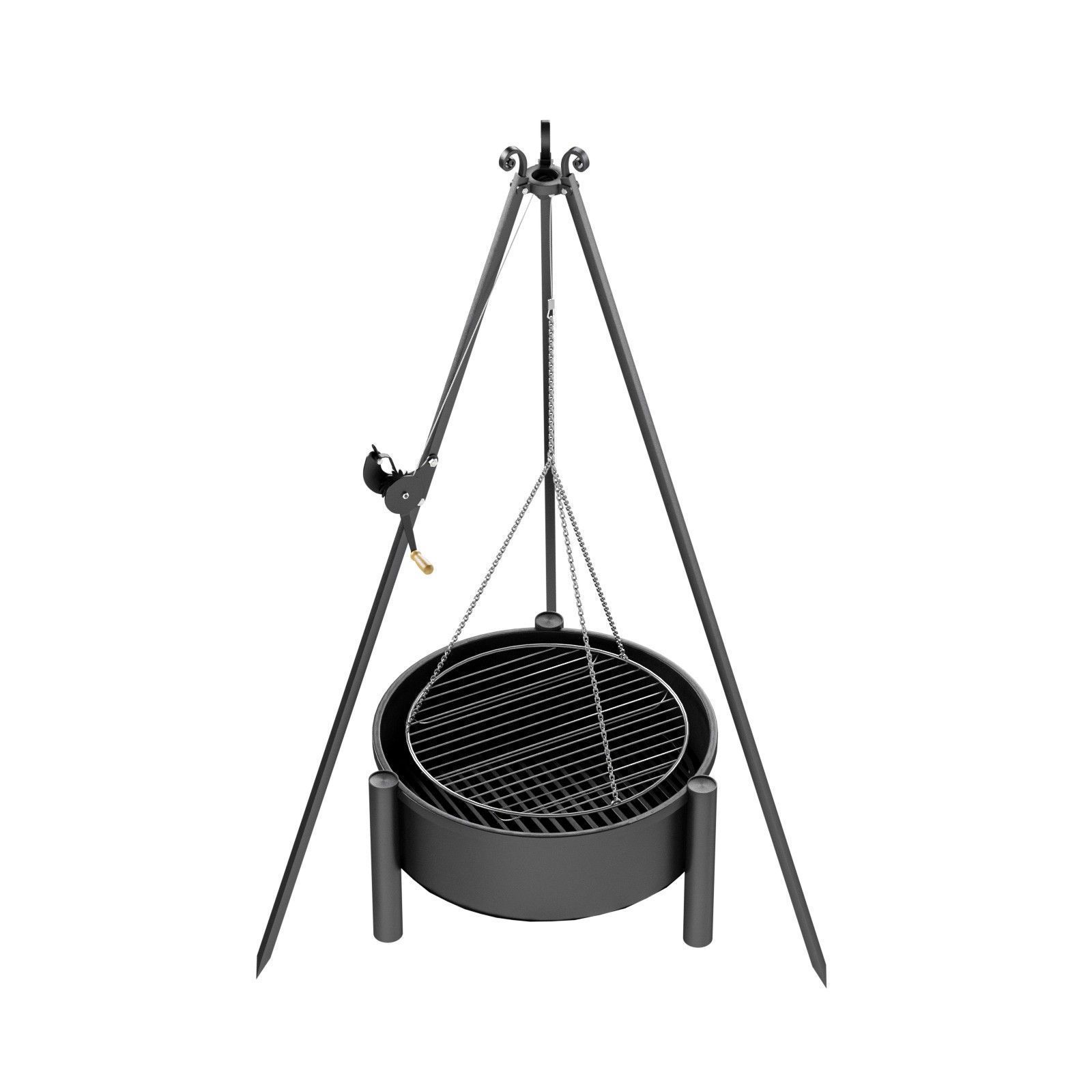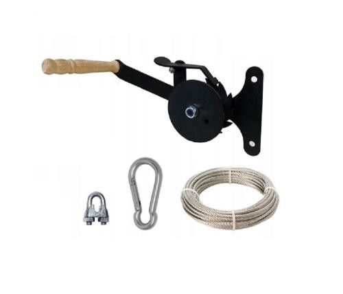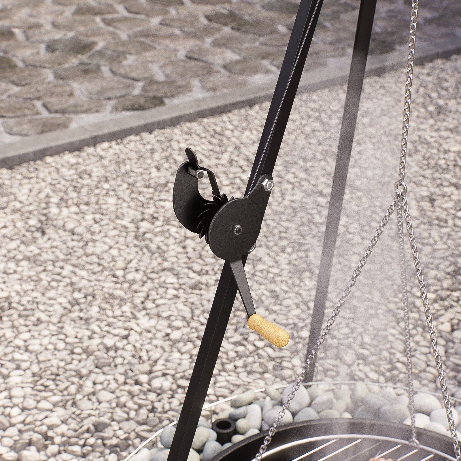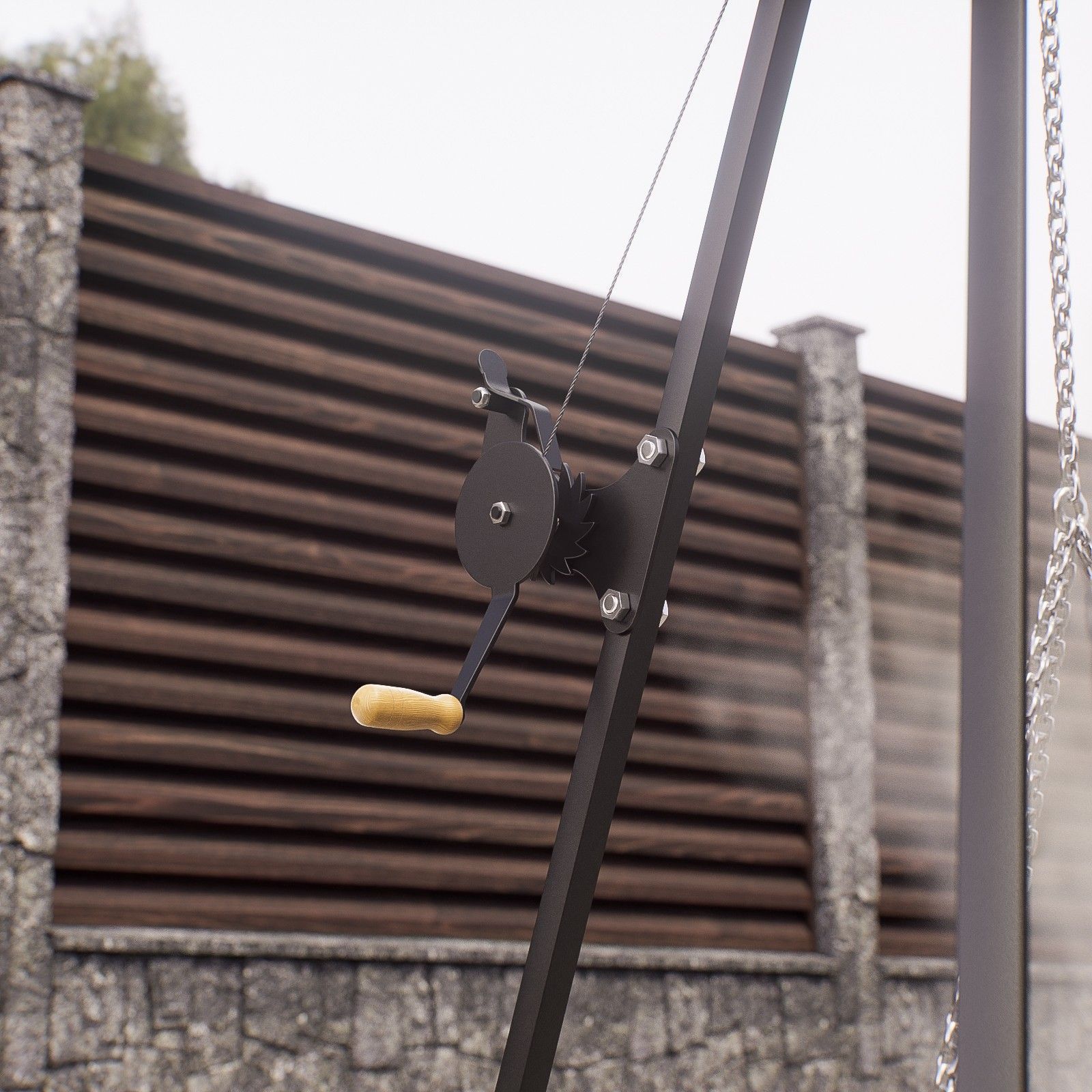 QLS Handwinde mit Bremse Seilrolle Seilwinde Kurbel Schwenkgrill Dreibein Stahlseil 7491