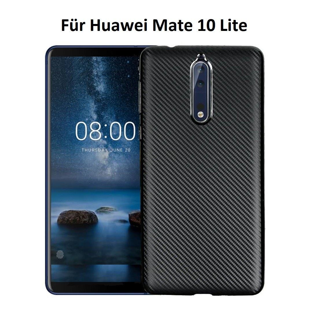 Handy Hülle für Huawei Mate 10 LITE Karbondesign Case TPU dünn schwarz Carbon