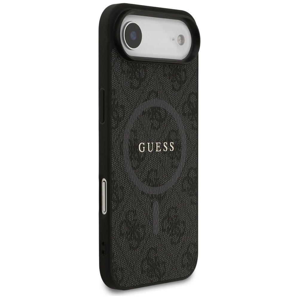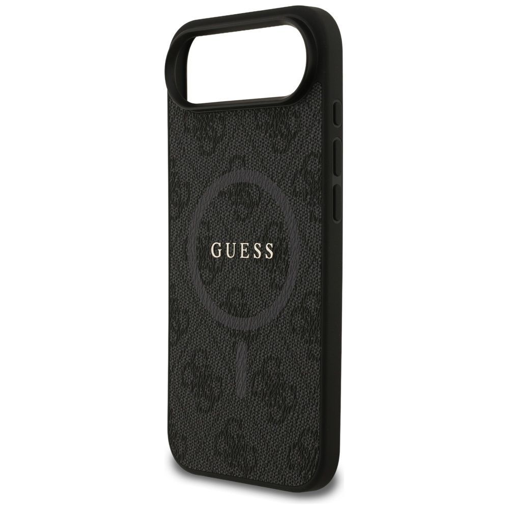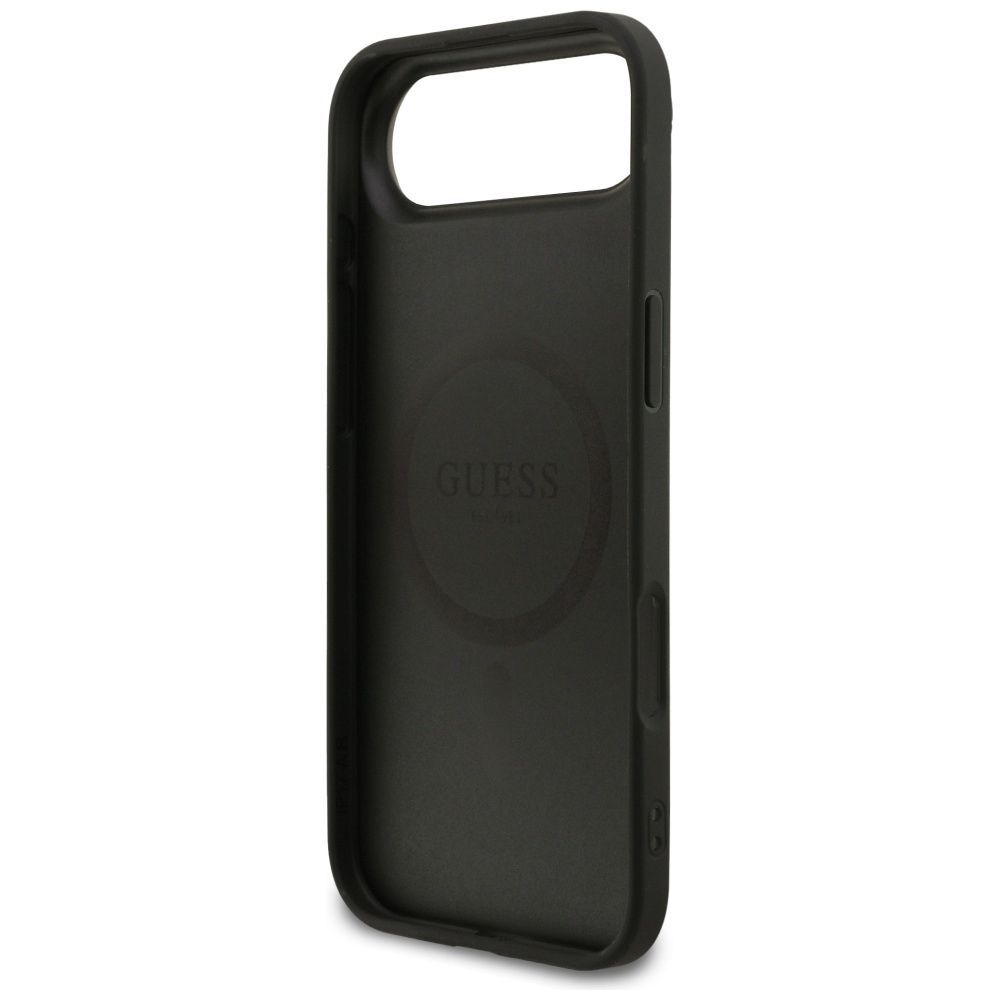 Guess Handyhülle Case iPhone 17 Air Guess MagSafe Kunstleder grau Logo goldfarben
