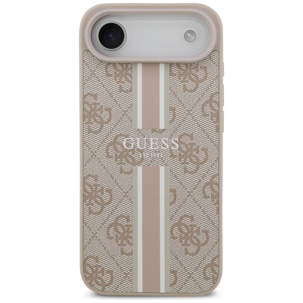 Guess Handyhülle Case iPhone 17 Air Guess MagSafe Kunstleder rosa Logo Streifen