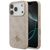 Guess Handyhülle Case iPhone 17 Pro Guess MagSafe Kunstleder rosa Logo goldfarben