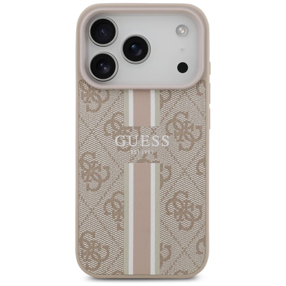 Guess Handyhülle Case iPhone 17 Pro Guess MagSafe Kunstleder rosa Logo Streifen