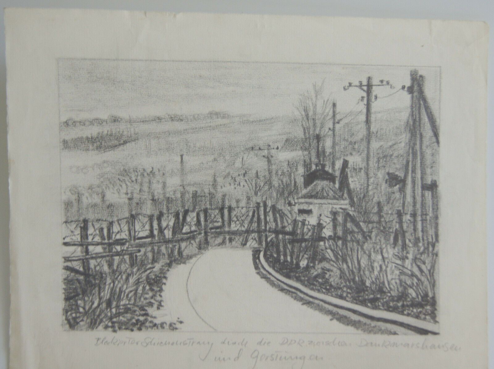 Handzeichnung Peter Schadwinkel um 1960 Zonengrenze /2250