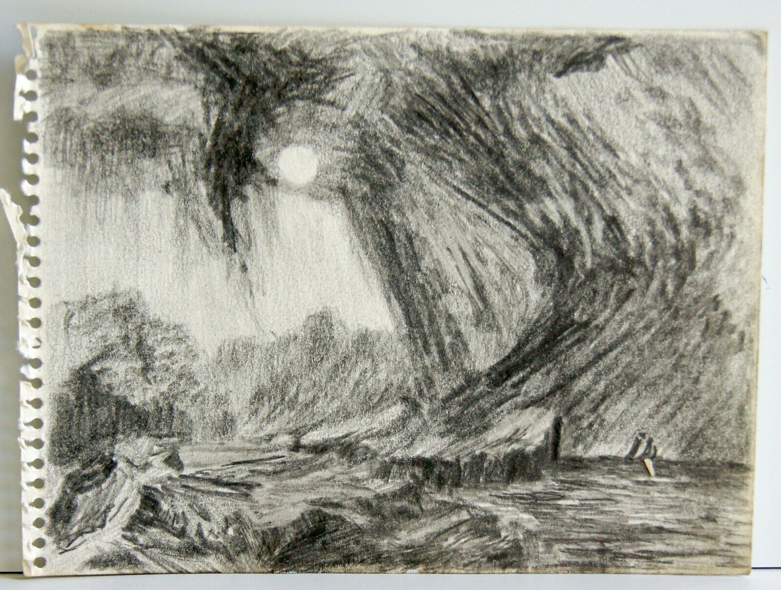 Bleistift-Handzeichnung um 1965. Künstler: Peter Schadwinkel (geb. 1938 in Königsberg) . Unsigniert , mit Echtheitszertifikat. Motiv: Sturm am Meer . Maße: H 13,5, B 18 cm. Mit diesem Bild erhalten Sie ein Echtheits-Zertifikat: Dieses Bild trägt die Nummer 289 des Hamburger Nachlasses. Antikes am De