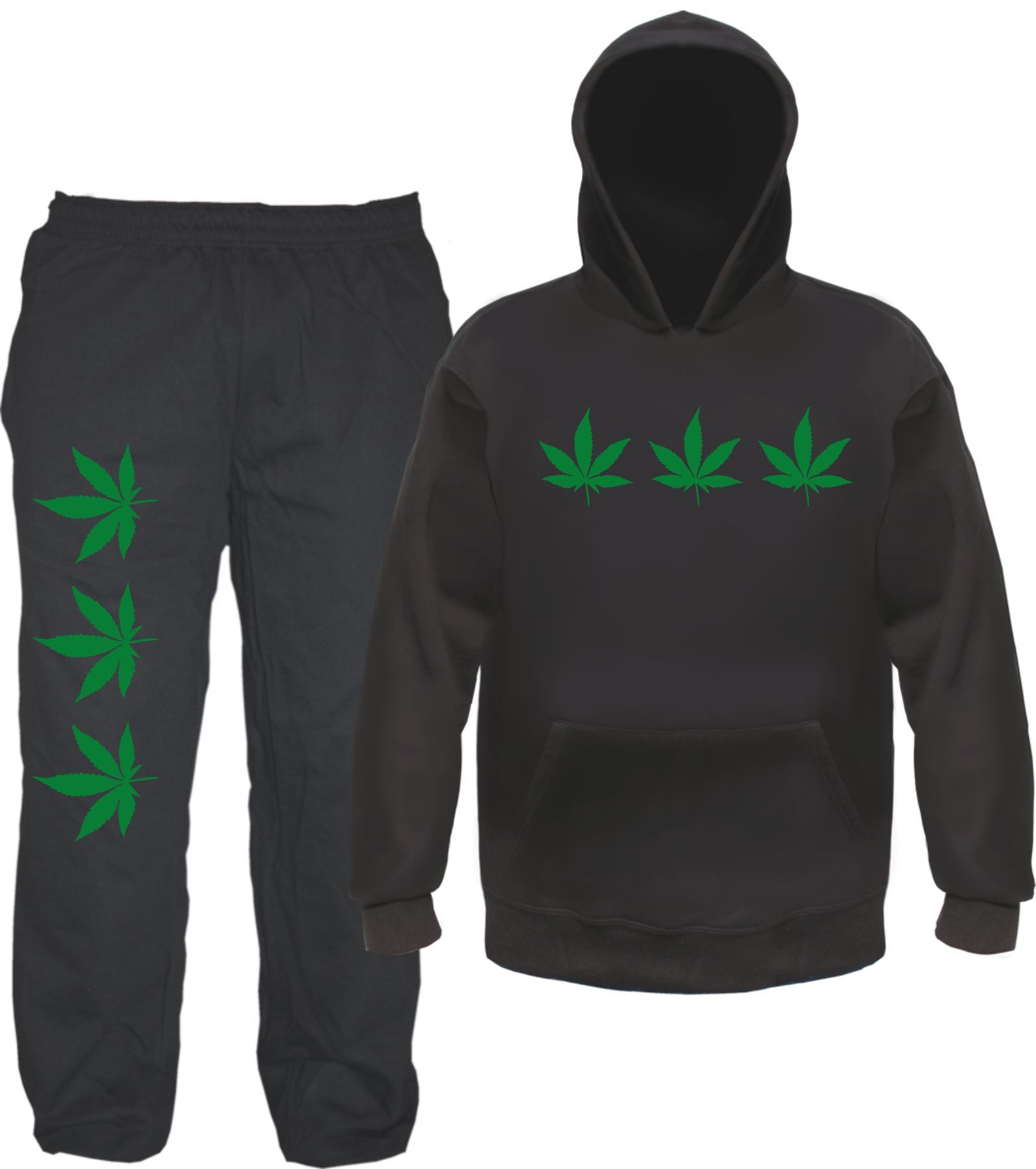 Hanf Jogginganzug - bedruckt - Jogginghose und Hoodie - Drei Hanfblätter Cannabis