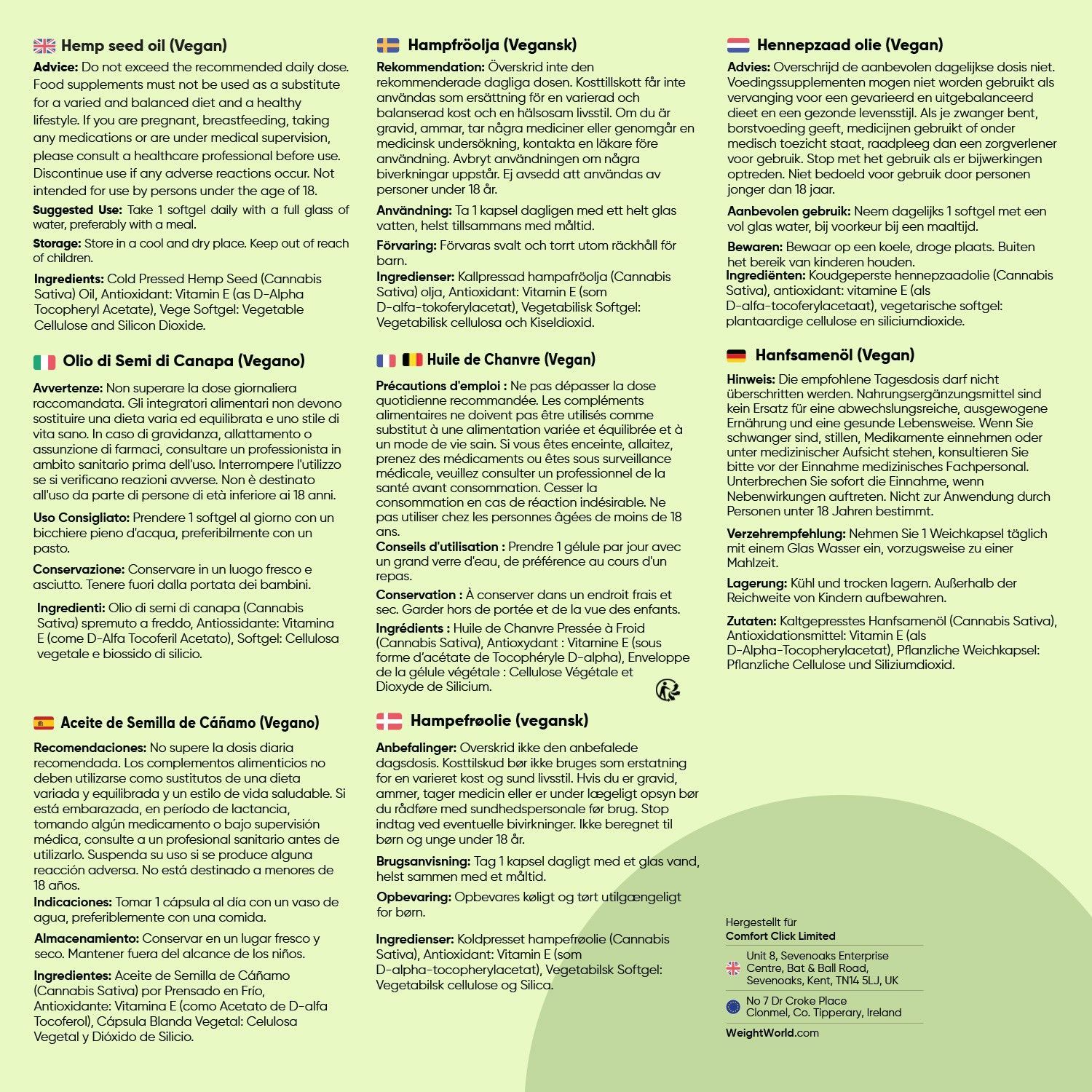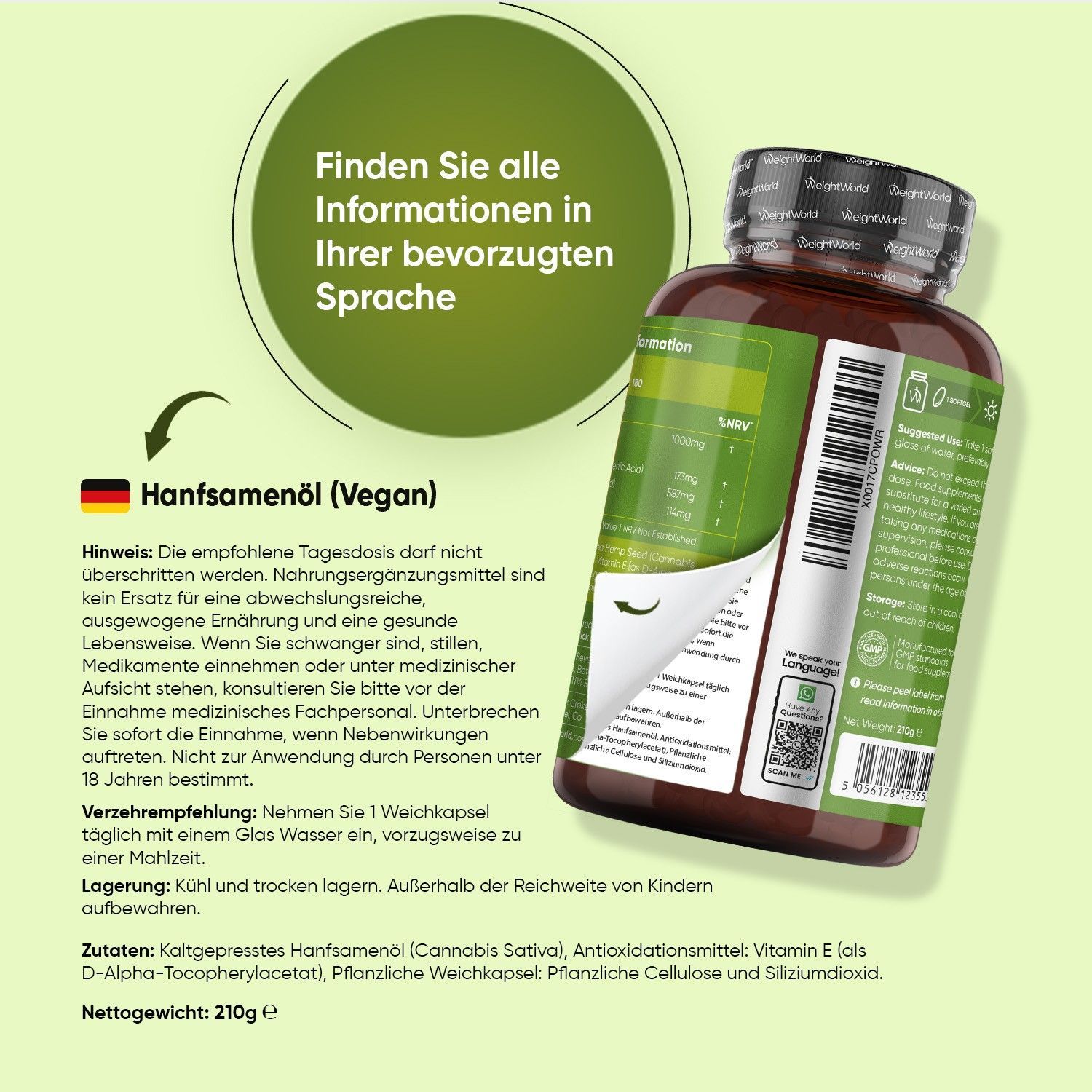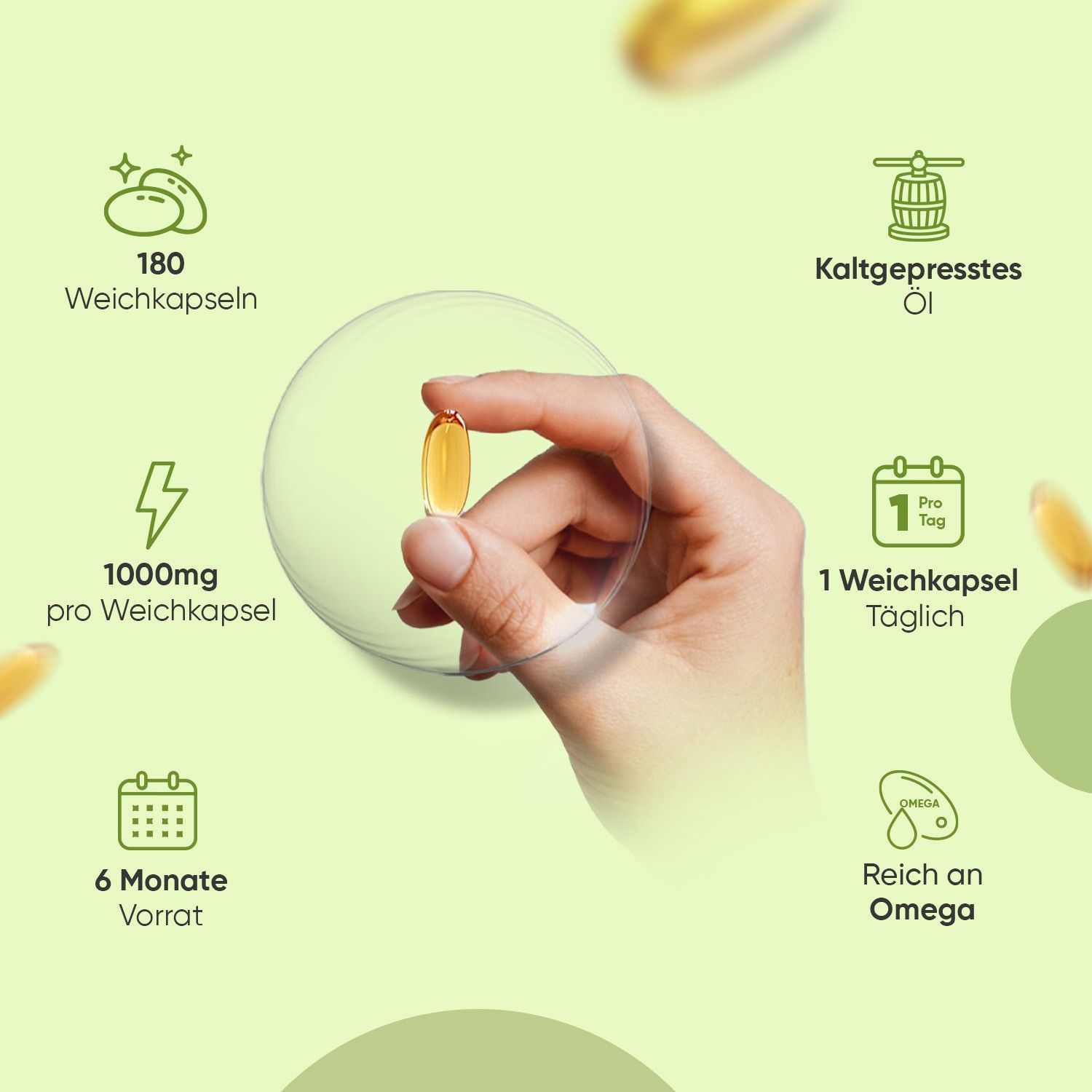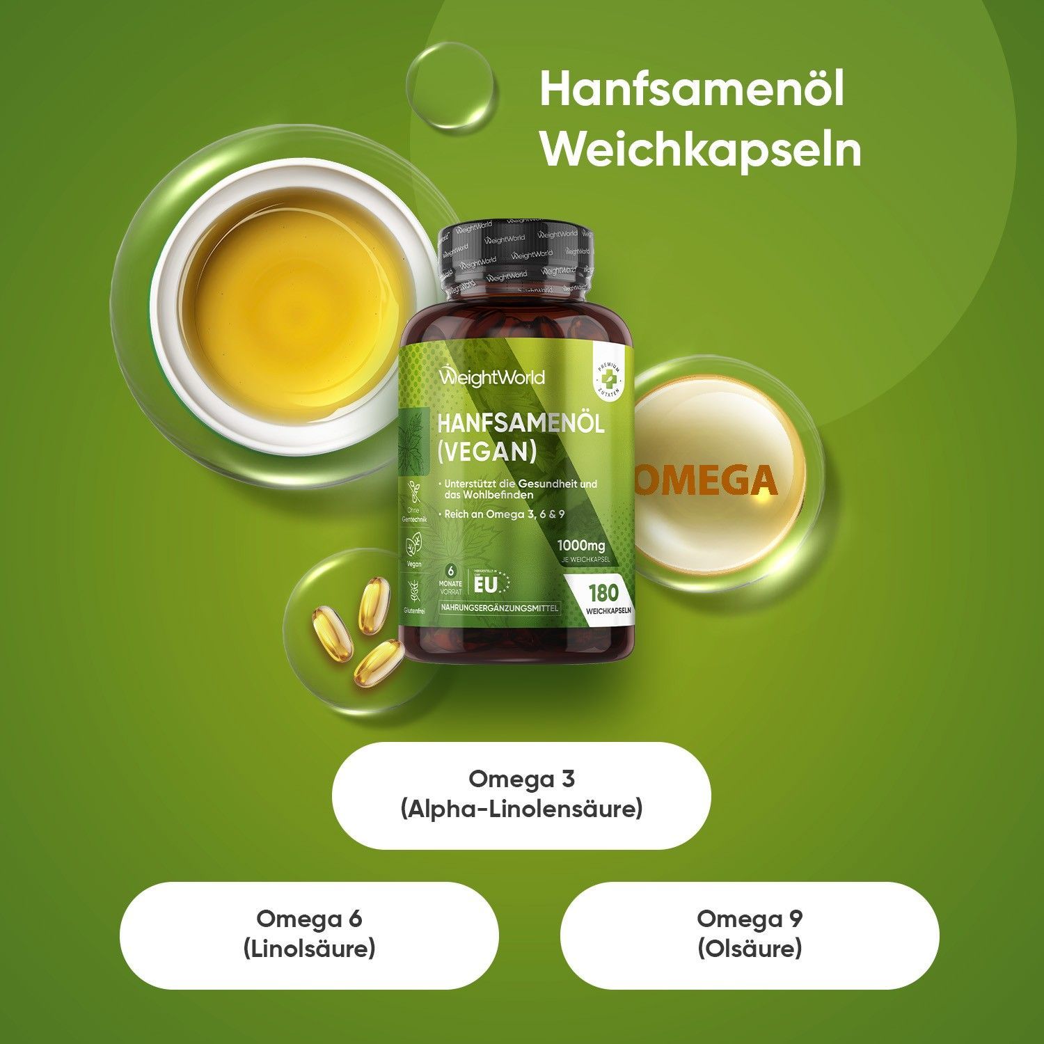 Hanföl Omega 3 Softgels - Alternativ zu Fischöl - 1000mg Hanfsamenöl - Omega 6 & 9