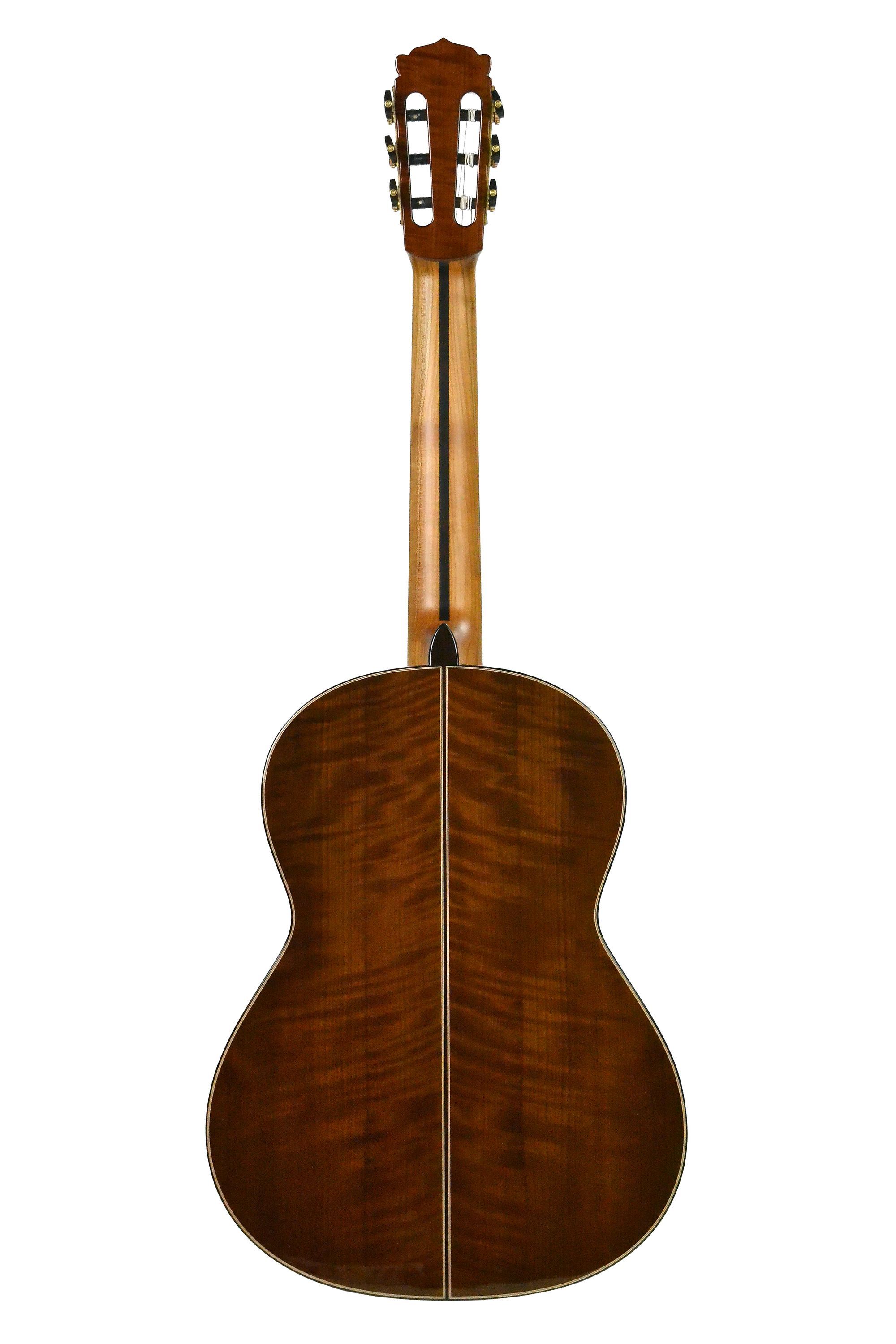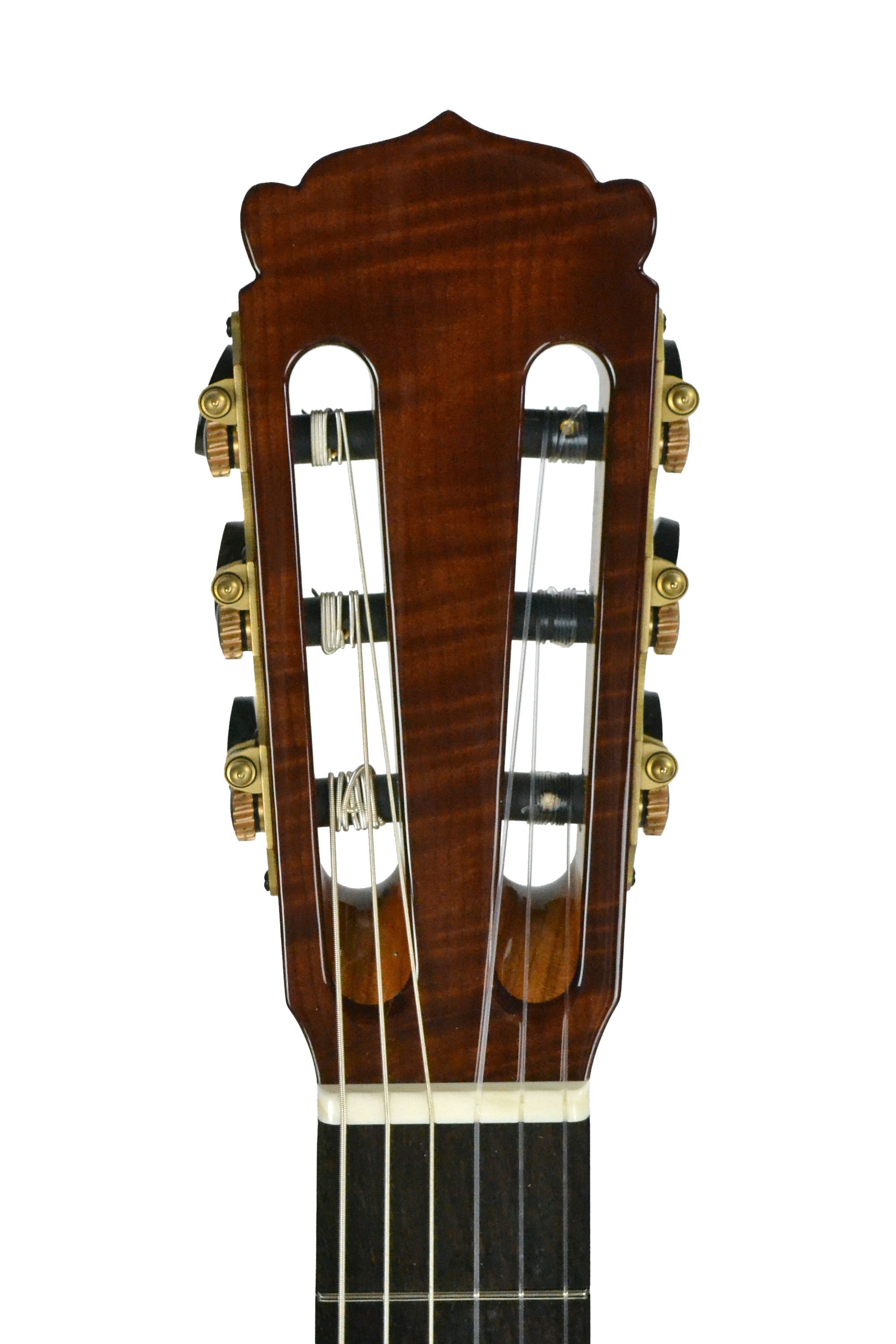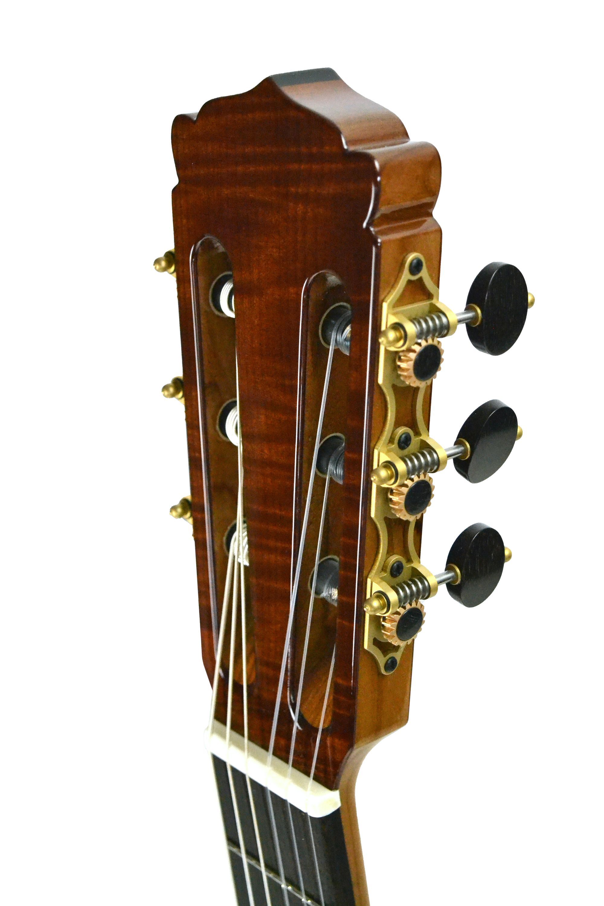 Hanika Natural Torres Zeder Custom Riegelelsbeere Dieses wunderschöne Einzelstück basiert auf der Hanika Natural Torres Zeder und hat ein paar veredelnde Modifikationen bekommen. Der Korpus aus geriegelter Elsbeere verleiht der Gitarre einerseits einen vollen, bassbetonten Klang, andererseits in Kom