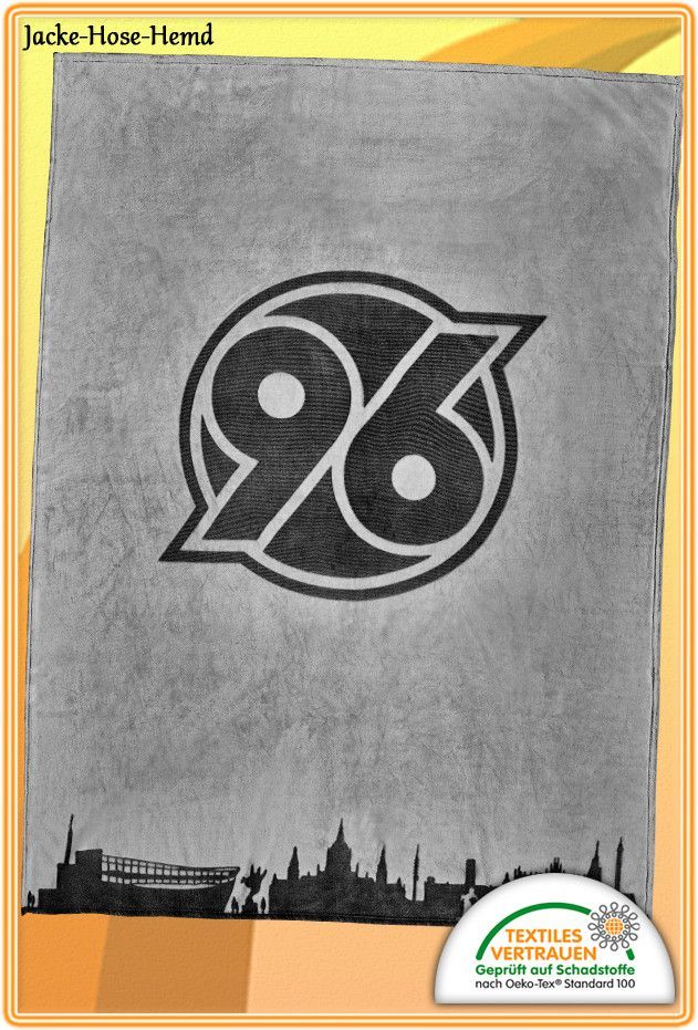 Hannover 96 H96 Decke Flanell-Kuscheldecke Skyline Grau Logo Gr. 150x200cm NEU