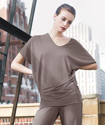 Hanro Damen Lounge T Shirt Chelsea Lyocell atmungsaktiv leicht V Ausschnitt dusty oli