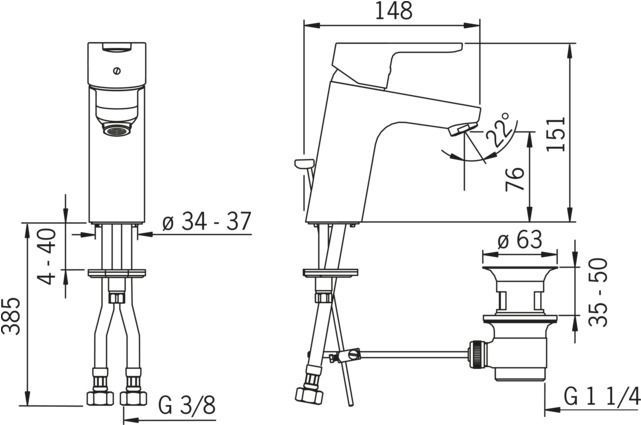 Hansa Armaturen Hansa Einhandmischer Waschtisch Hansaprimo XL m Alg Anschl. ü. Druckschl. Ausl str. V