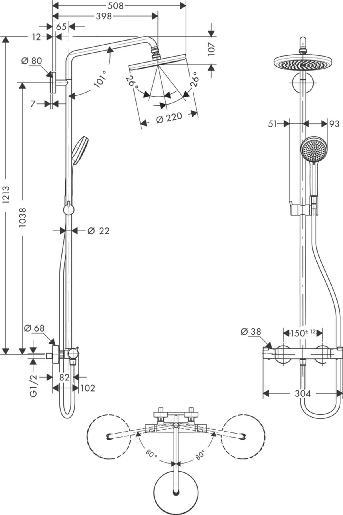 Hansgrohe Hansgrohe CROMA Showerpipe 220
