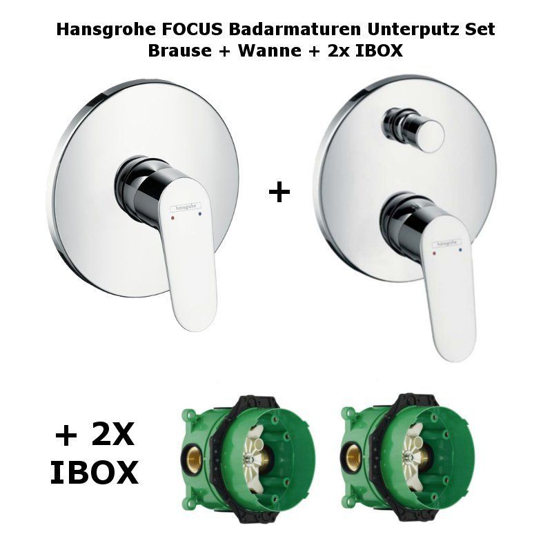 • Hansgrohe FOCUS Badarmaturen Unterputz Set • Brause + Wanne + 2x IBOX