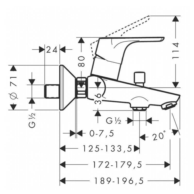 Hansgrohe FOCUS E2 Wannenarmatur AP chrom, Wannenmischer 31940000