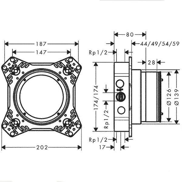 Hansgrohe Hansgrohe iBox Universal 2 Grundkörper für UP-Einhebelmischer Thermostate DN15