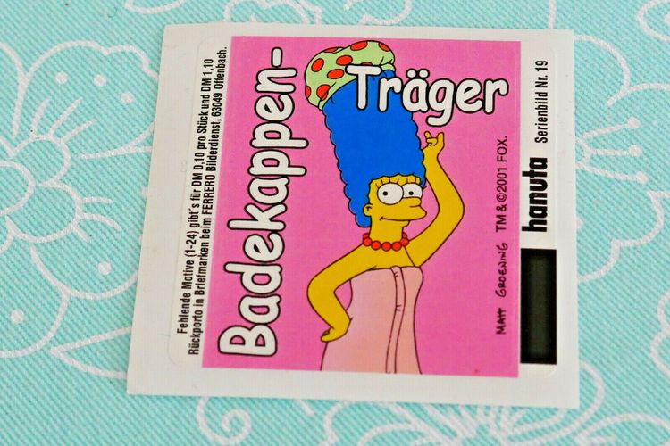 HANUTA Sammelbilder Sticker 2001 Marge Simpson - Badekappen-Träger - Nr. 19