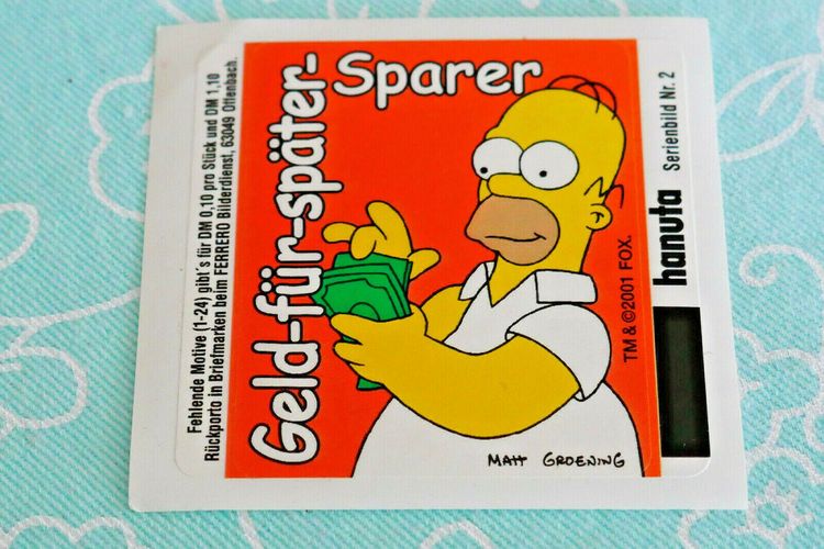 HANUTA Sammelbilder Sticker Homer Simpson - Geld-für-später-Sparer - Nr 2