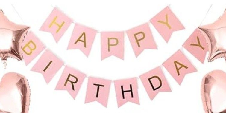 Happy Birthday Girlande Banner Geburtstagsdeko rosa, nur 1x aufgehangen benutzt, ohne Ballons und ohne Schnur