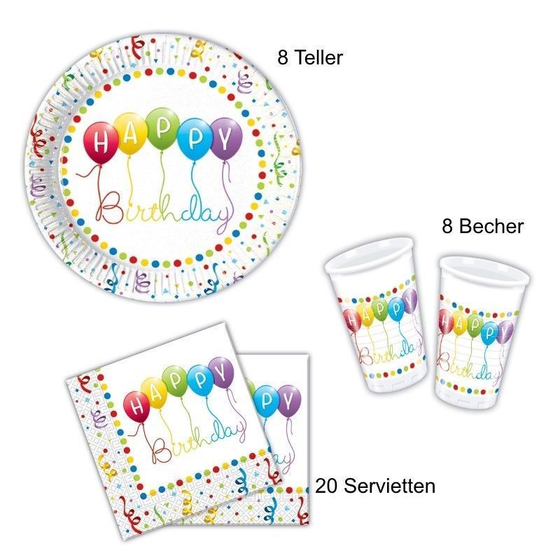 Happy Birthday Streamers 8 Pers. Geburtstag Party Set Teller Becher Geschirr NEU