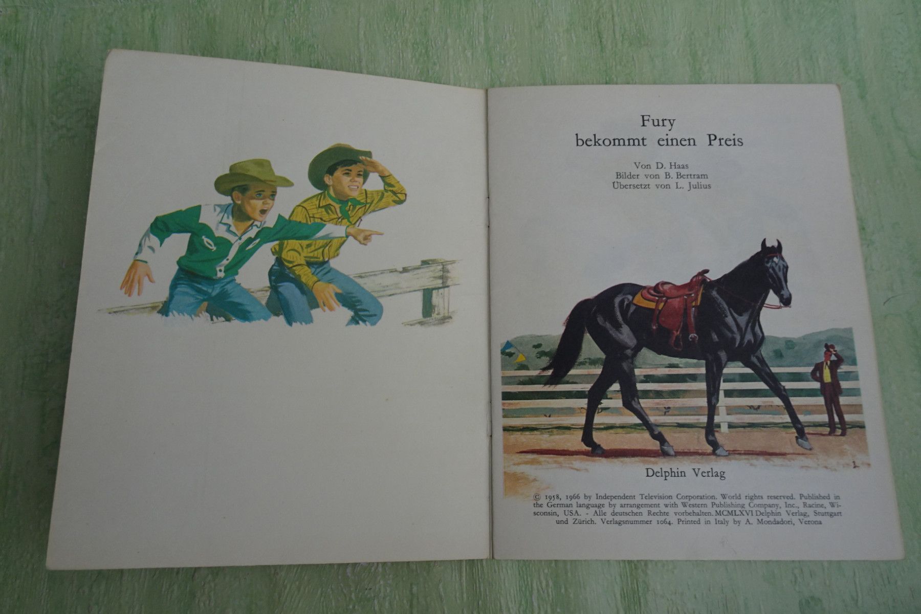Bilderbücher - Kinderbücher ... Erinnerungen ..... Happy - Buch Delphin Verlag Heftchen Softcover ca Din A5 Format - beide - Fury bekommt einen Preis von D. Haas , Bilder B. Bertram, übersetzt von L. Julius 1966 Fura macht das Rennen - Bilder von Mel Crawford, übersetzt von E. Hofmann, 3. Auflage 19... Mehr