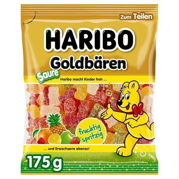 HARIBO Haribo Goldbären Sauer gezuckerte saure Fruchtgummi Bären 18x175 g Beutel
