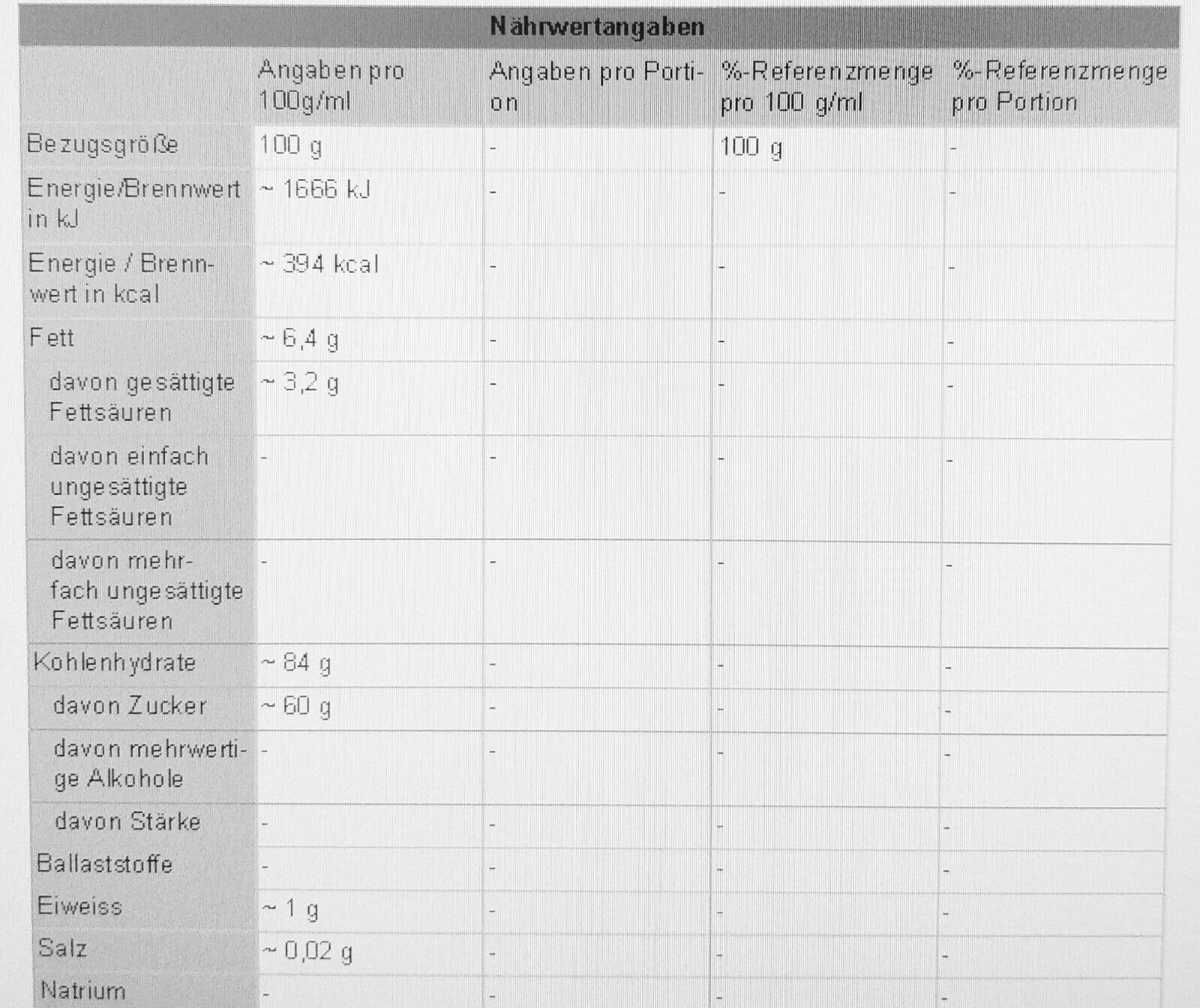 Lebensmittelspezifikationen: