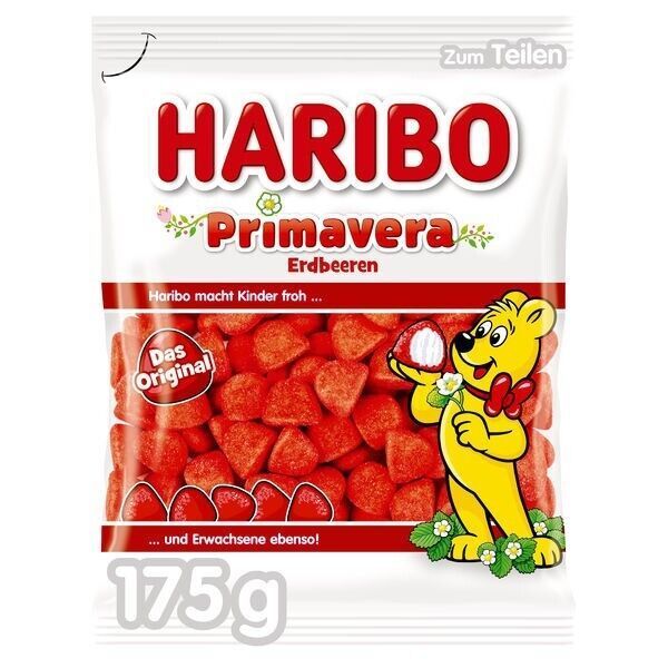 Haribo Primavera Erdbeeren gezuckerte Schaumzucker Stücke 10x175 g Bt.
