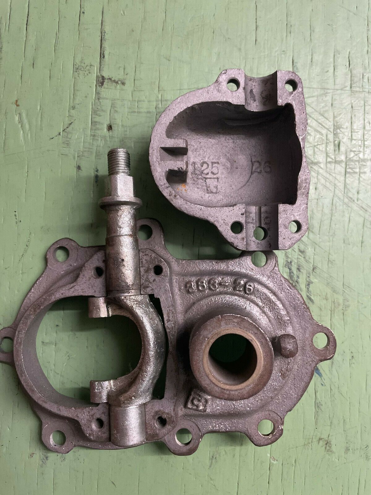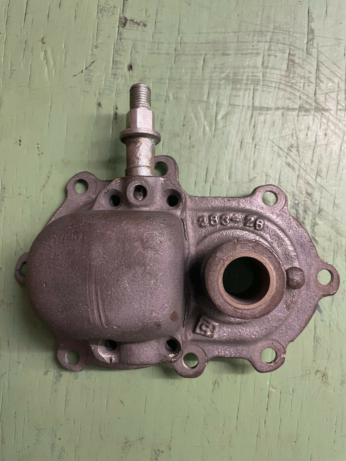 Original Kickstart cover Getriebedeckel mit Kupplungsausrückstange für die Baujahre 1926 1927 1928 1929 J JD, Gussnummer 383-26 125-26 in einem sehr schönen Zustand! Der einzige Mangel ist die leicht gebrochene Schraubenaufnahme an der linken Seite (siehe Bild 6, 7, 8)
