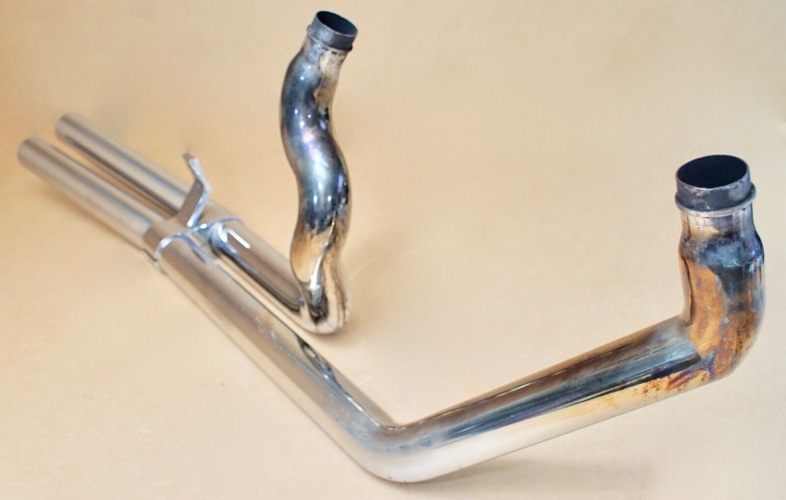 Harley Davidson custom 2 Auspuff Exhaust Shovelhead S&S HARLEY 2 ZOLL CUSTOM AUSPUFFANLAGE V2A IN CHROM - OHNE DÄMPFEREINSÄTZE MIT HALTER - WIE ABGEBILDET DIE AUSPUFFANLAGE WAR WIE AUF DEN UNTEREN BILDERN ABGEBILDET AUF EINER FL SHOVELHEAD MIT S&S MOTOR UND STD KÖPFEN VERBAUT ( 2-STEHBOLZEN AUSPUFFK