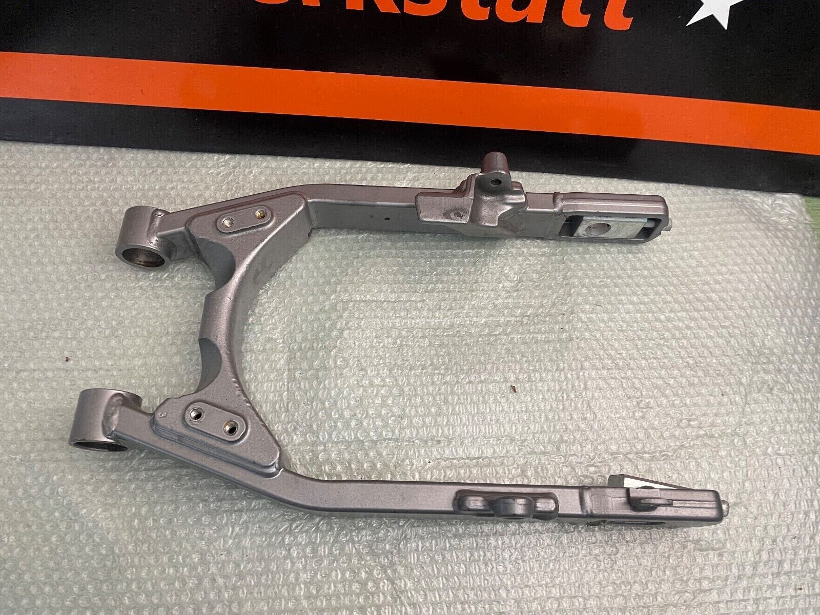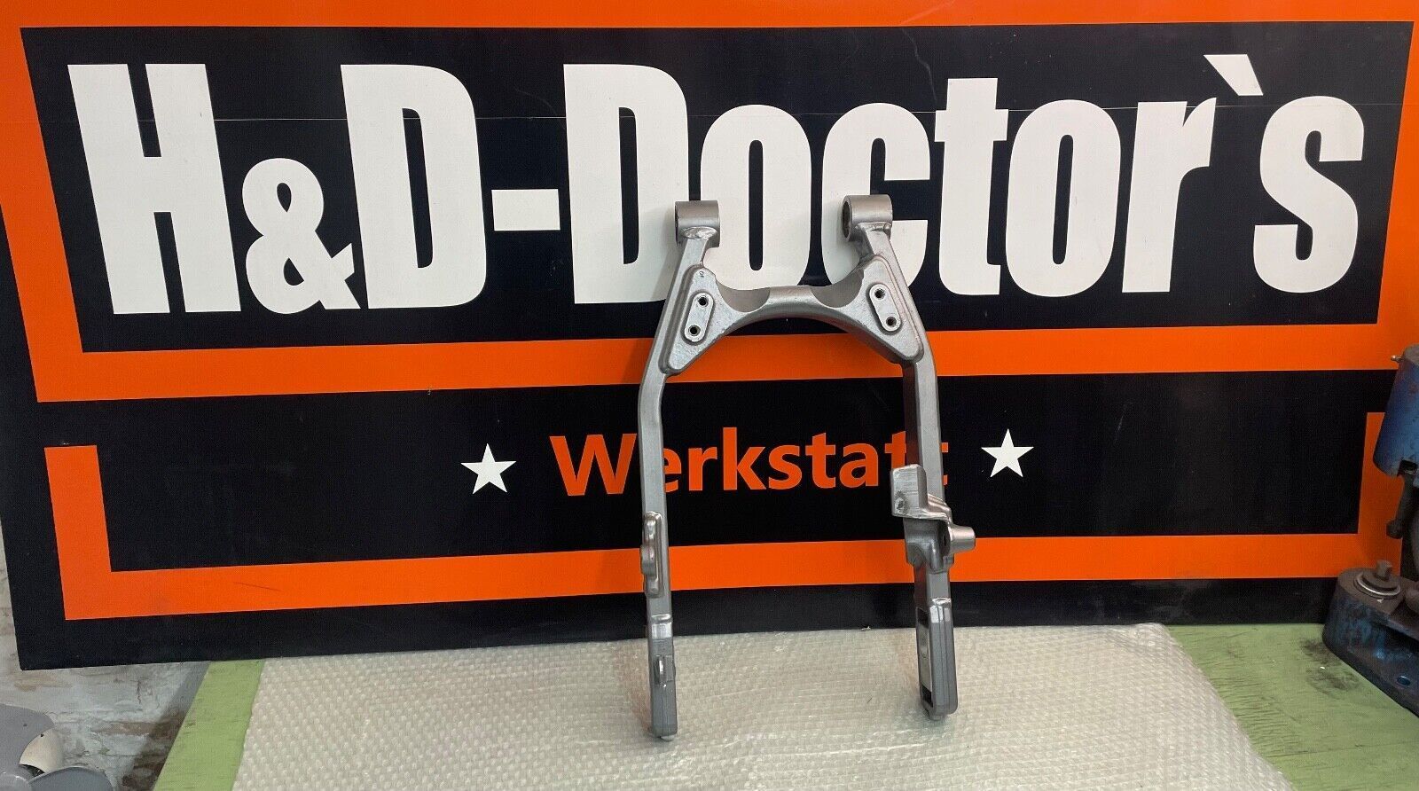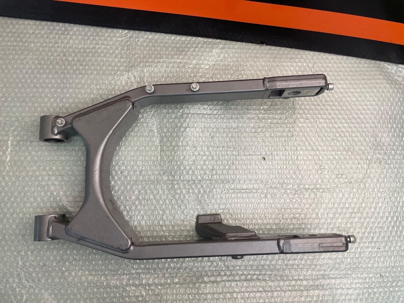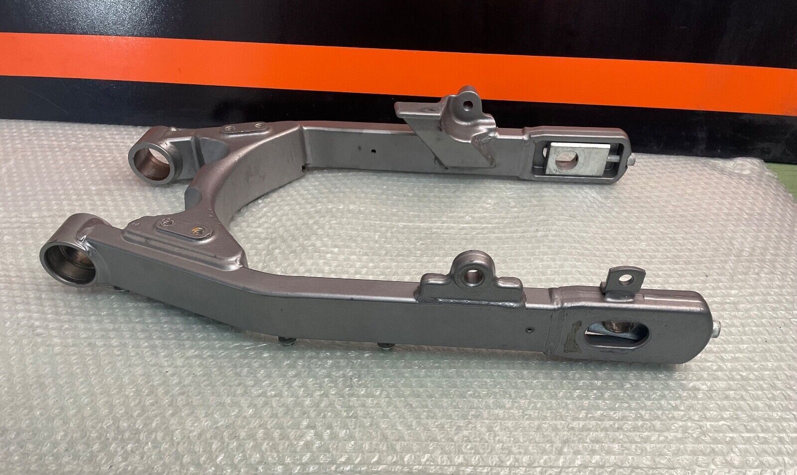 Gebrauchter Schwinge einer 2009er Harley-Davidson Fat Bob CVO FXDFSE in Denim Granit Handgearbeiteter Sonderlacksatz aus 2009 passend für FXDFSE sowie weitere FXDF Modelle OEM Teilenummer 48656-09CYW Unter den folgenden Hood Auktionsnummer findest du weitere zu diesem Lacksatz passende Originalteile