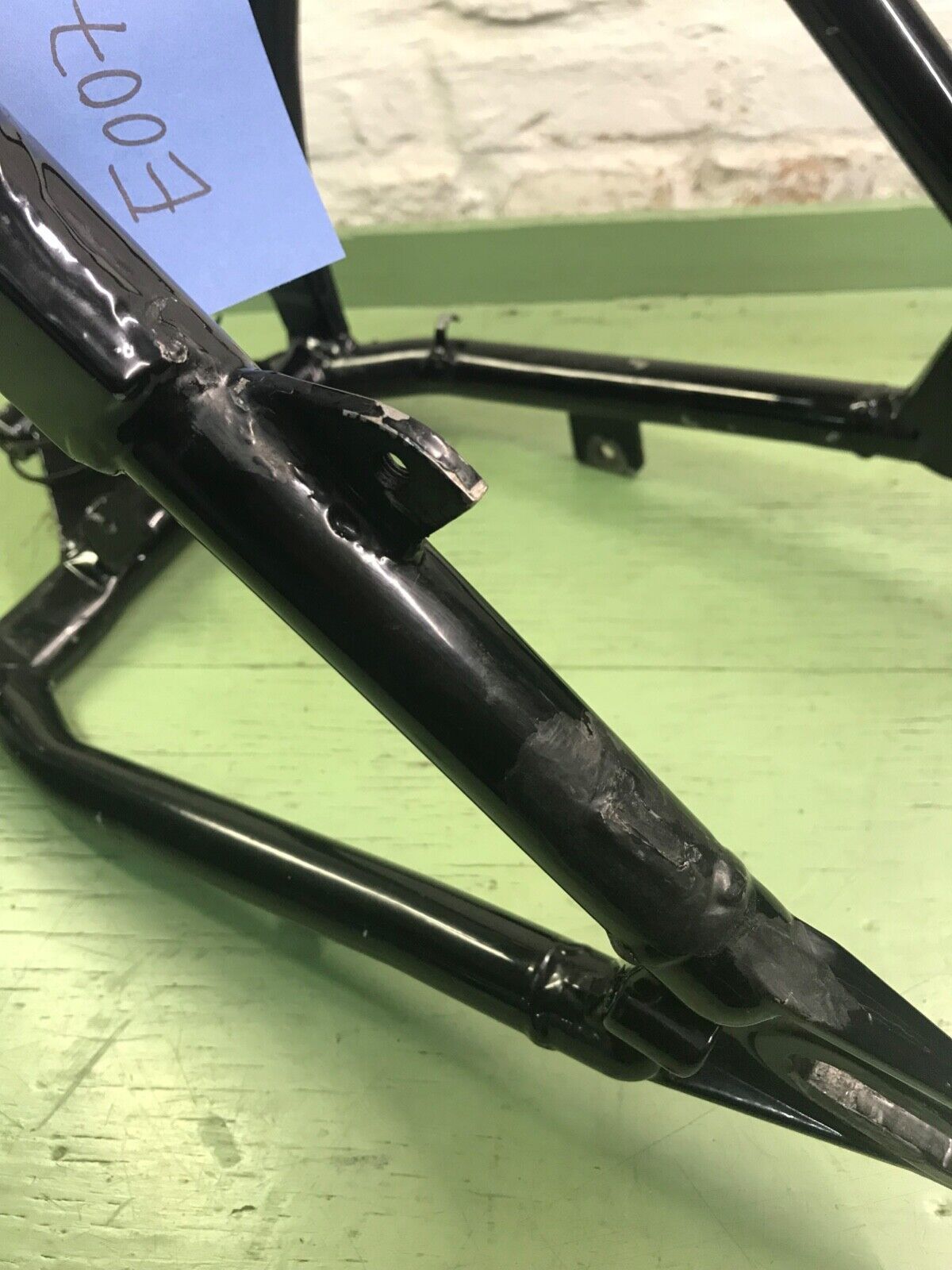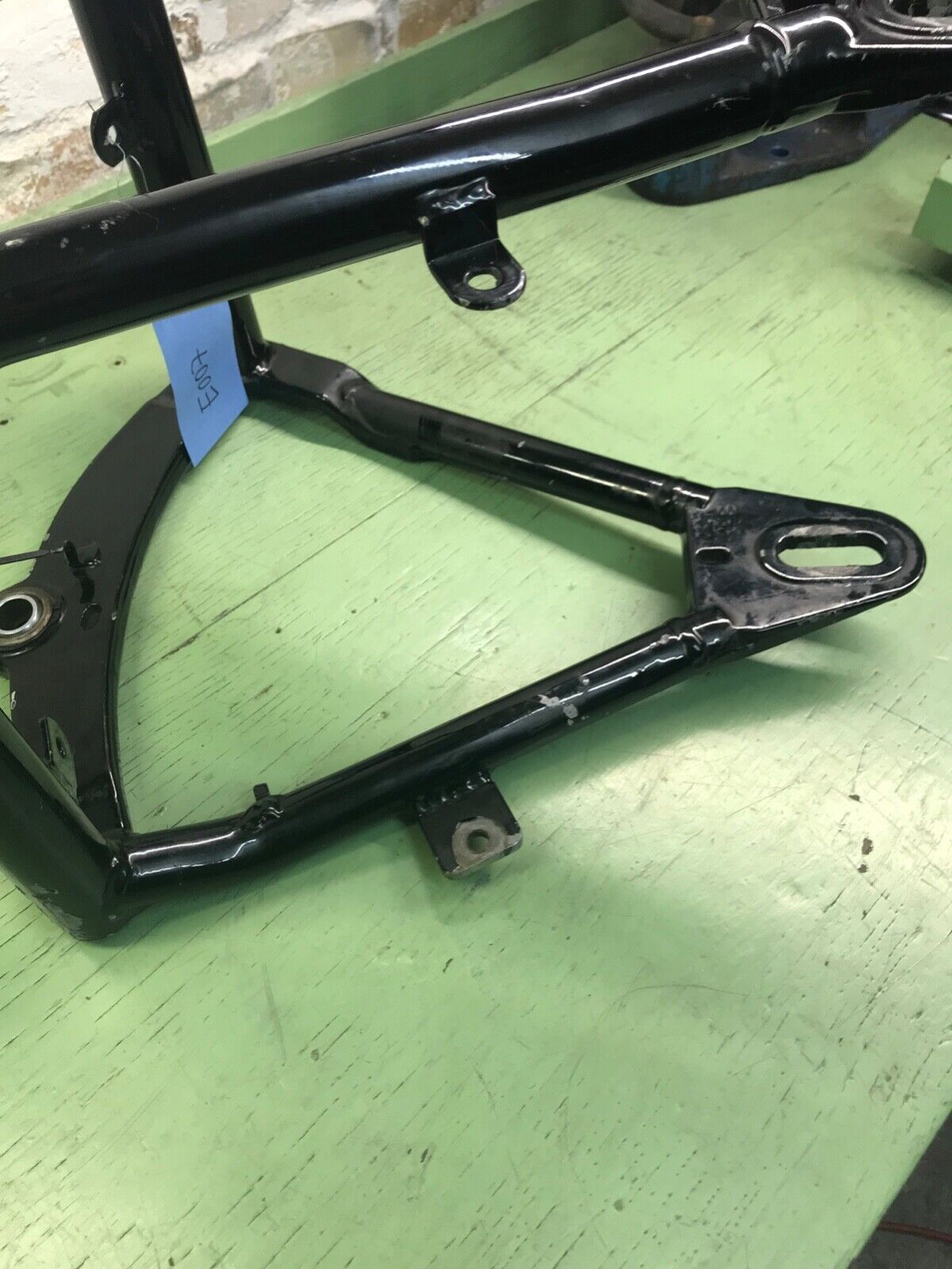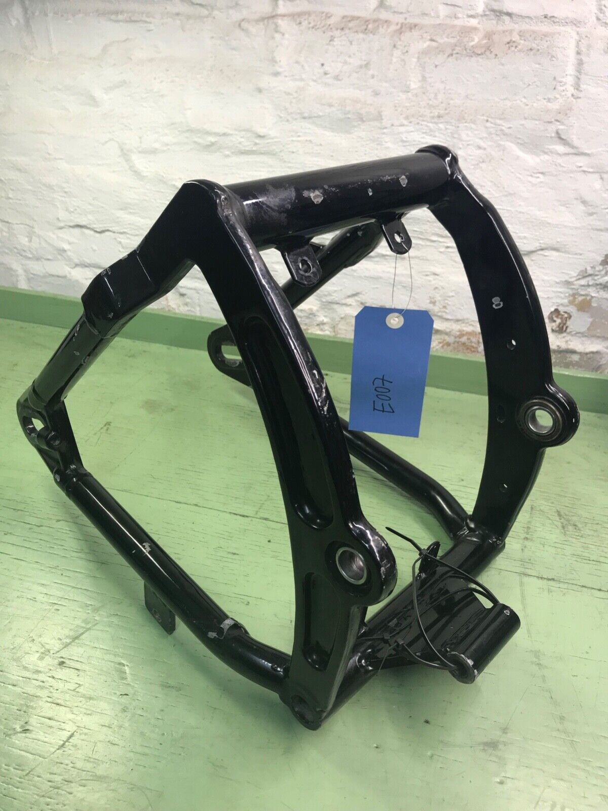 Harley Davidson EVO Softail Schwinge 86-99, schwarz eine Aufnahme an der Schwinge wurde einige Zentimeter nach oben versetzt, Bremssattelaufnahme geändert, siehe Fotos Abmessungen: Rahmenaufnahme außen: ca. 26,6cm Achsaufnahme innen: ca. 24,2cm Achsaufnahme Durchmesser: 1,9cm