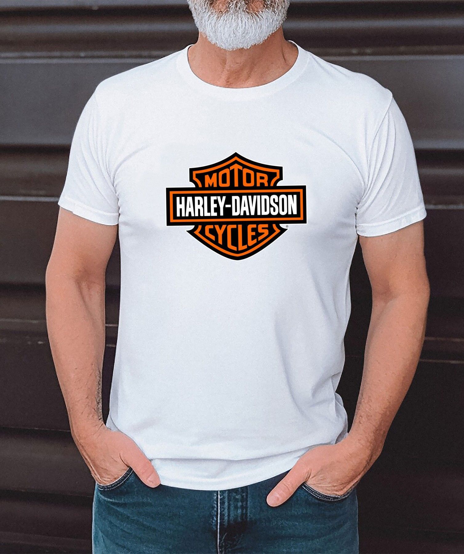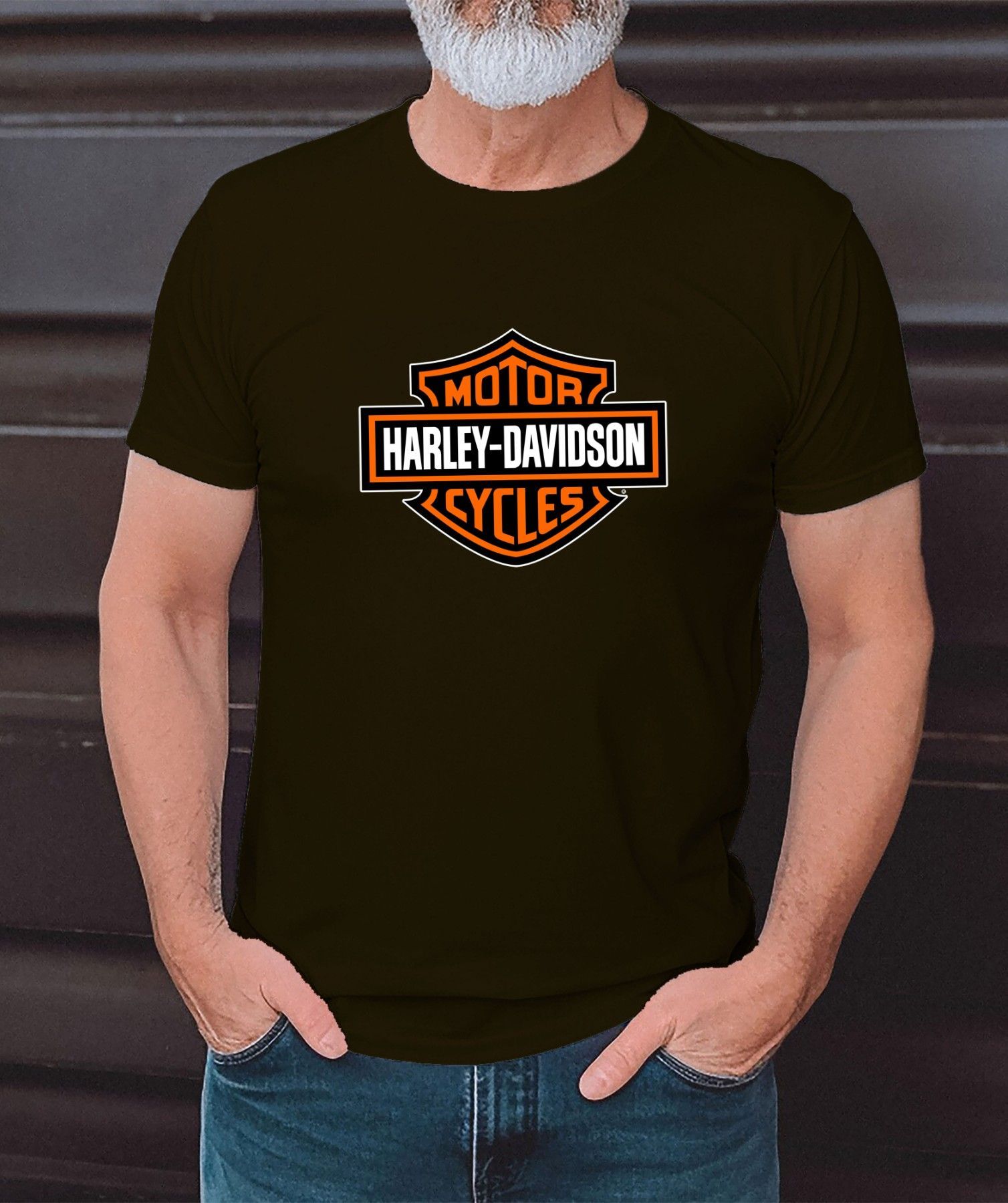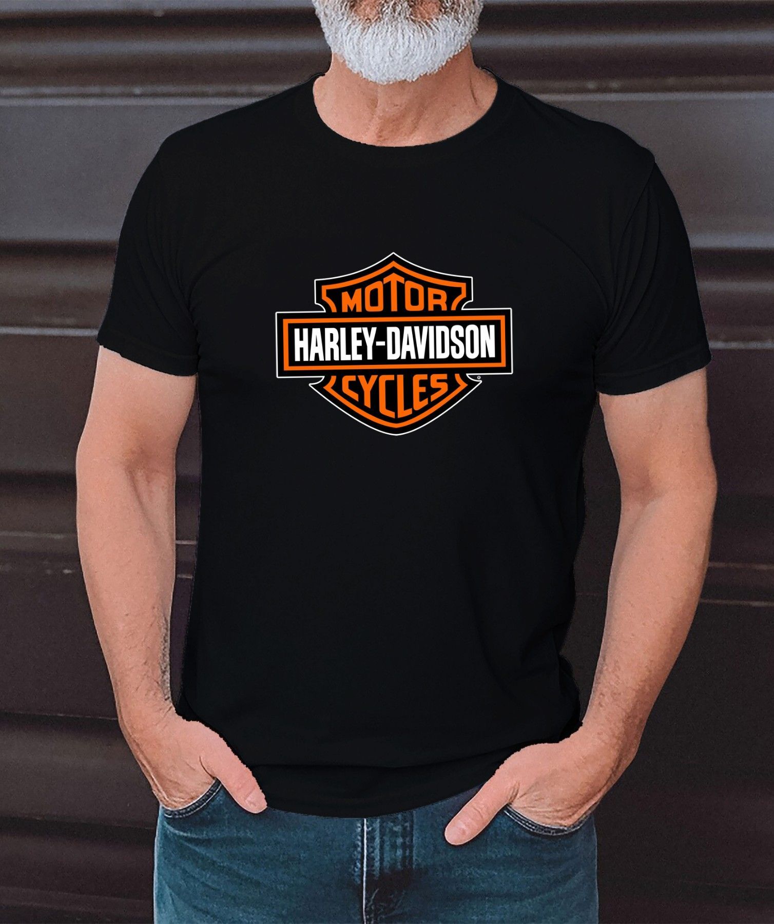 Harley Davidson Orange logo T-Shirt, Herren T-Shirt, Motocycle Shirt