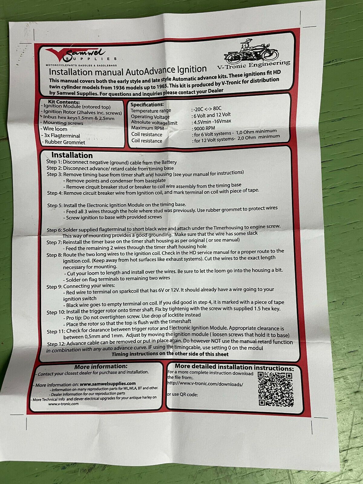 Neue Elektronische Zündung der Firma Samwel Supplies Die Zündung funktioniert mit einer 6 Volt sowie mit einer 12 Volt -Anlage! Nur für Handverstellbare Zündung! Nicht für Pan mit Doppelkontaktzündung org. Bj: 64 (excl. OEM single fire models Bj: 64) Es können neun verschiedene Kurven für die Zündun