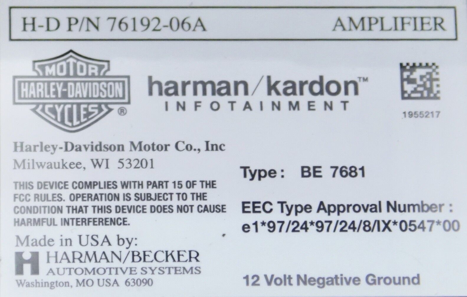 Harley original Verstärker Amplifier Sound System Electra Street Glide Touring HARLEY ORIGINAL HARMAN KARDON VERSTÄRKER MIT HALTER FÜR TOUR PAK TRÄGER PASSEND FÜR TOURING MODELLE 06-13 OEM : 76192-06A BITTE BEACHTEN !!! ELEKTRONISCHE BAUTEILE SOLLTEN GRUNDSÄTZLICH VON EINER FACHWERKSTATT MONTIERT WE