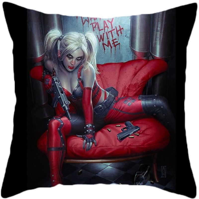 DC Comics Harley Quinn Schwarze Dekokissen mit Qualitäts-Füllung und Reißverschluss