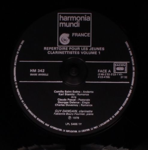 harmonia mundi France HM 342 - Guy Dangain - Repertoire Pour Les Jeunes Clarinet