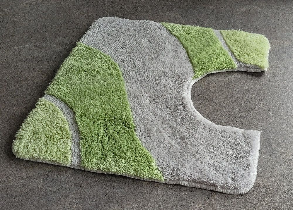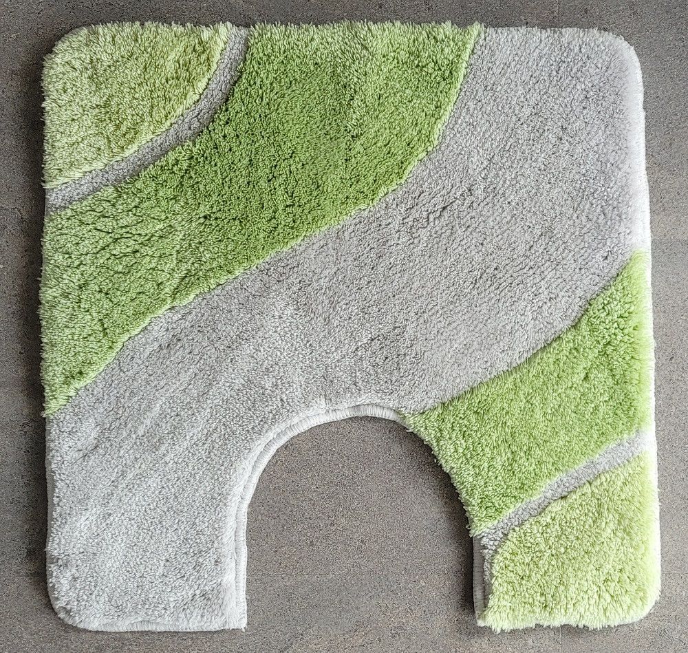 ***Achtung: Aufgrund d. Lagerung die Originalverpackung ist beschädigt! Reduziert!*** Harmony Auster weiß-grün WC- Vorleger mit Ausschnitt 55x55 cm. Florhöhe durch Hoch Tief Effekt - 15-20mm. Qualitativ und optisch sehr hochwertig. 100% Polyacryl, bis 40°C waschbar. Trockner- und Fußbodenheizung... Mehr