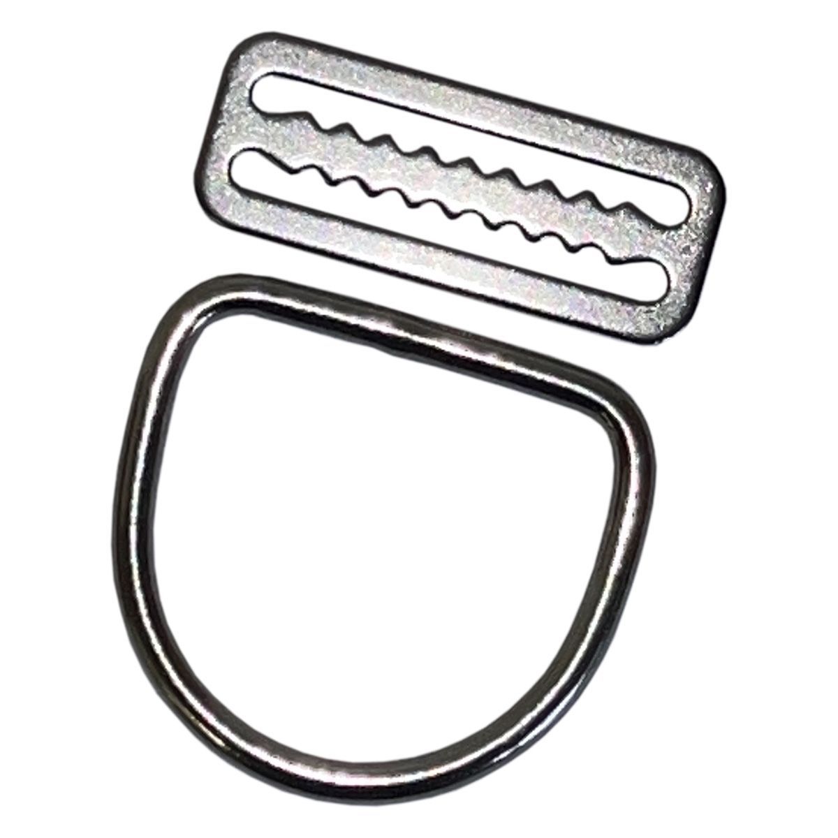 Harness D-Ring Set gerade mit Gurtstopper gezahnt V4A für 50mm Gurt