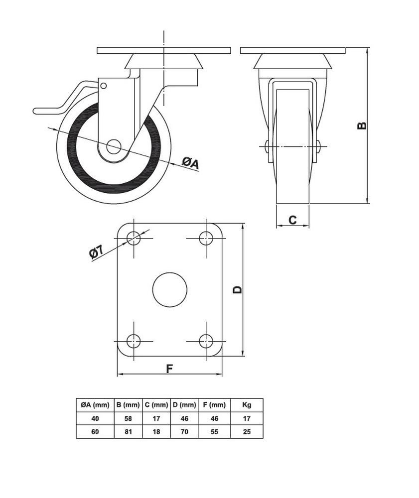 Hartgummirolle Möbelrolle aus Metall mit Anschraubplatte und Bremse Lenkrolle