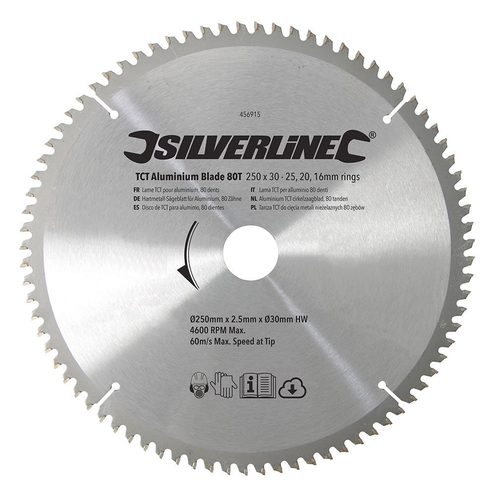 Hartmetall Sägeblatt für Aluminium 250 x 30 mm 80 Zähne mit Reduzierringen