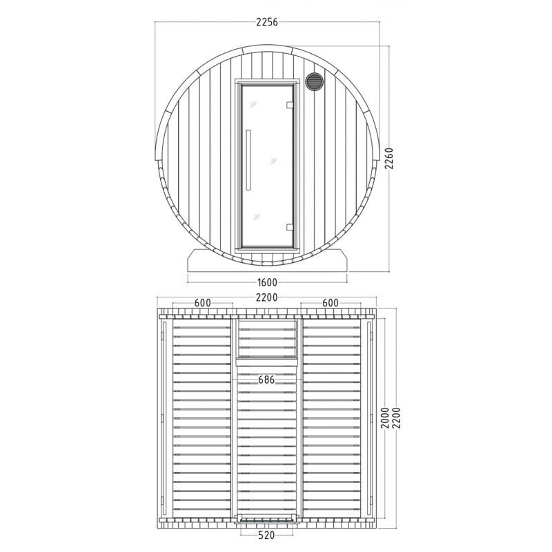 Harvia Harvia Kuusi 220 Fasssauna aus Fichte Gartensauna mit Dacheindeckung Ø 220 x 220 cm