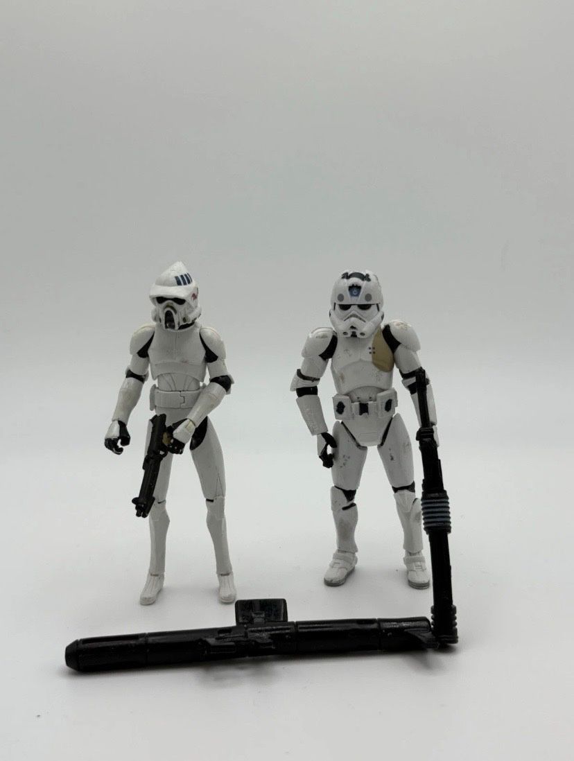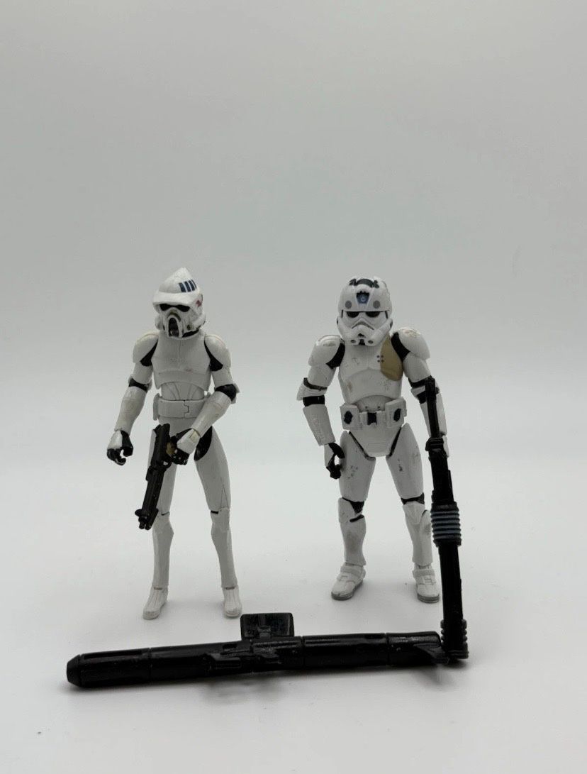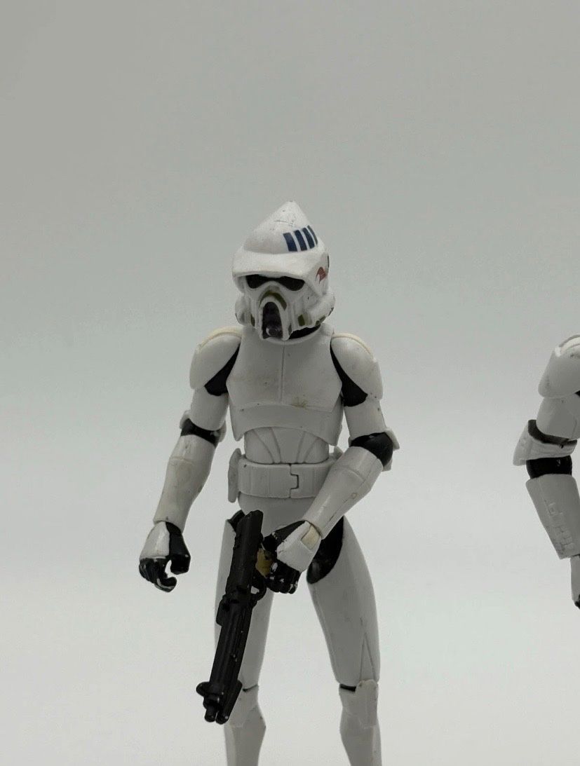 Zum Verkauf steht ein seltenes Clone Trooper Figuren-Set aus der Serie Star Wars: The Clone Wars von Hasbro. Die Figuren stammen aus Sammlerbesitz und werden ohne Originalverpackung verkauft. Die Clone Trooper sind detailliert bemalt, verfügen über mehrere Bewegungspunkte und eignen sich ideal für S