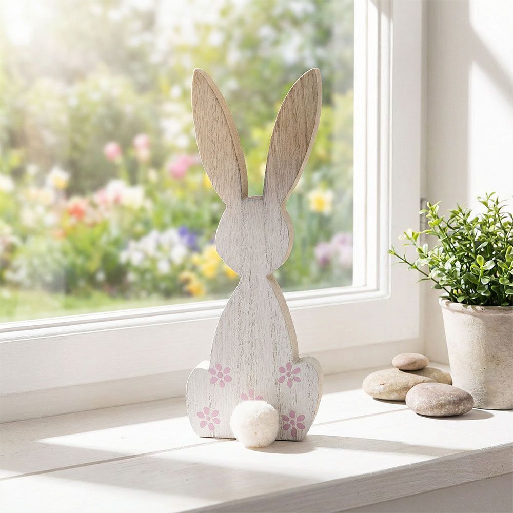 Hase mit Wuschel Holz weiß 19,5 cm