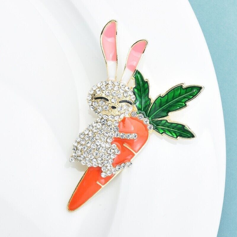 Brandneue superstarke Hasen Brosche mit Möhre Maße: ca. 5,2 - 6,8 cm Multicolore Design Ein absolutes Hingucker Stück Fashion Style Women Vintage Hinweis: Das abgebildete Bild stellt den Artikel dar und Sie erhalten ihn aus der verfügbaren Charge. Das Bild wird möglicherweise auf dem Bildschirm ange