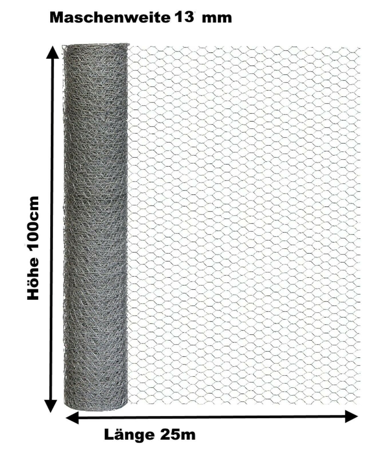 Hasen-zaun verzinkt 100cm x 25m Sechseck-draht Volieren Zaun 13mm Taubenschutz