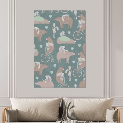 • Glasbilder - 100x150 cm - Bär - Hase - Muster (Gr. 100x150 cm)
