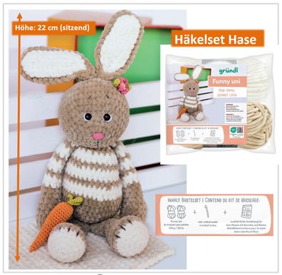 Gründl Häkelset Hase, 2 x100g Funny uni Chenillegarn + 1 Häkelnadel + Anleitung